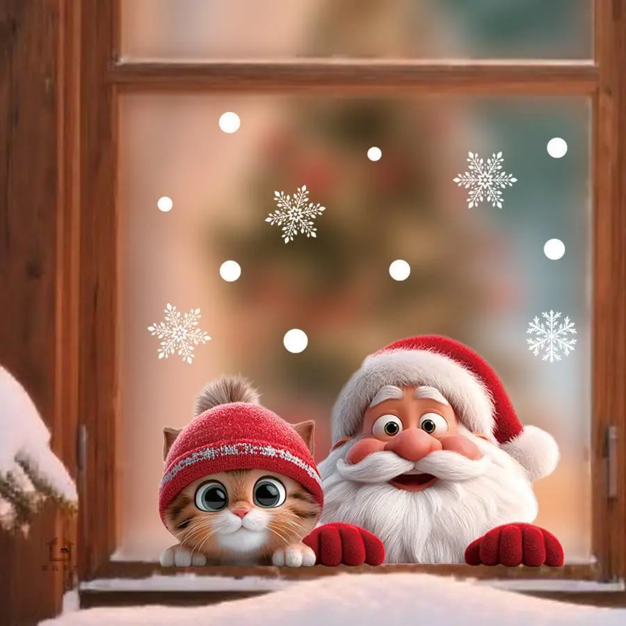 1pc Santa Claus Glass Sticker Removable Static Cling Decoration for Living Room Entrance Corridor Window Clings Decoration