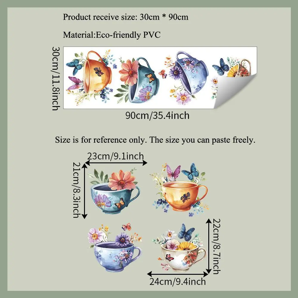 Creative Watercolor Exquisite Tea Cup Wall Sticker