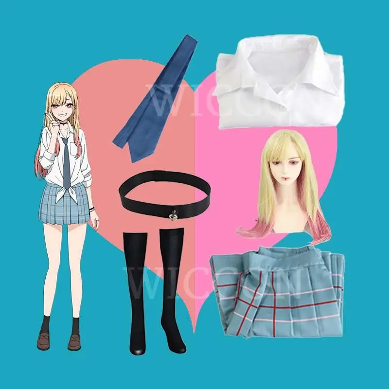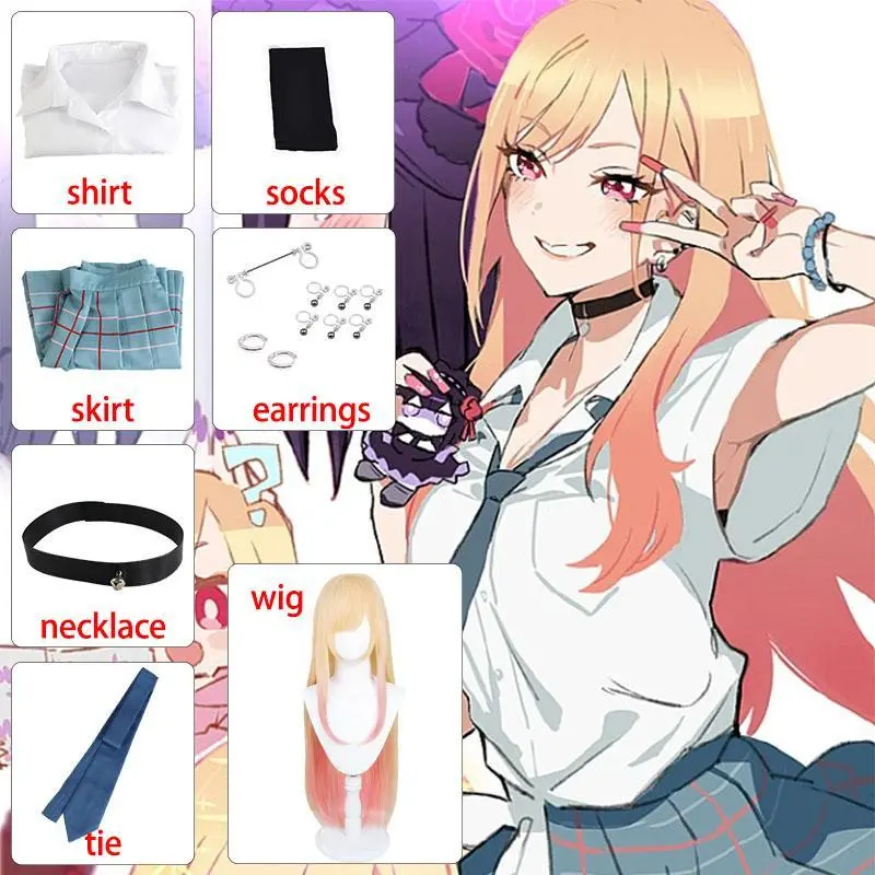 Kitagawa Marin Cosplay Anime  Dress Up Kitagawa Marin Cosplay Costume Dresses School Uniform Wig Earrings Suit Girls