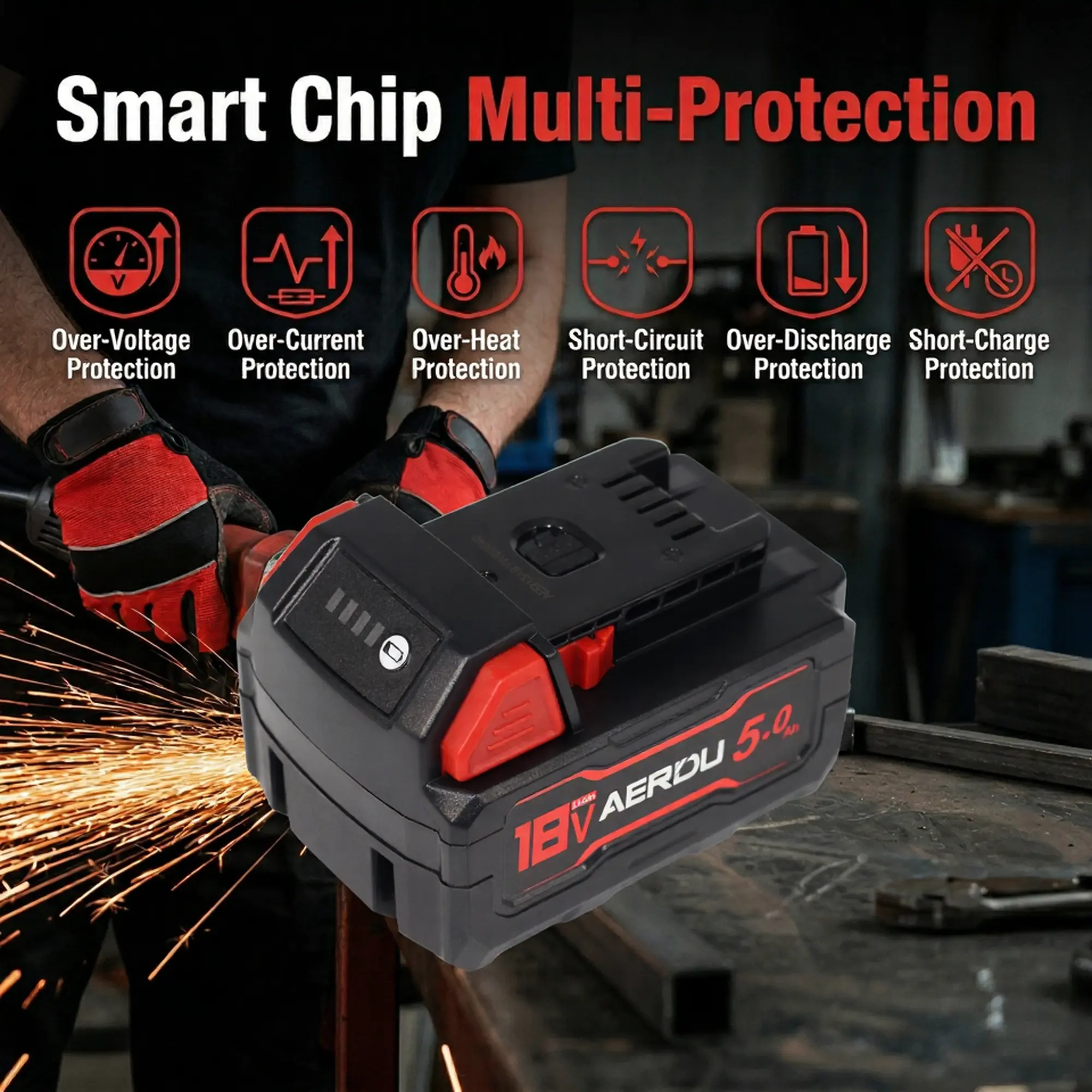 Built to survive the demands of the trade. Features an impact-resistant outer shell that withstands accidental drops. Inside, the advanced smart chip provides multi-layer protection against overcharging, overheating, short-circuiting, and voltage spikes, ensuring a longer battery lifespan.