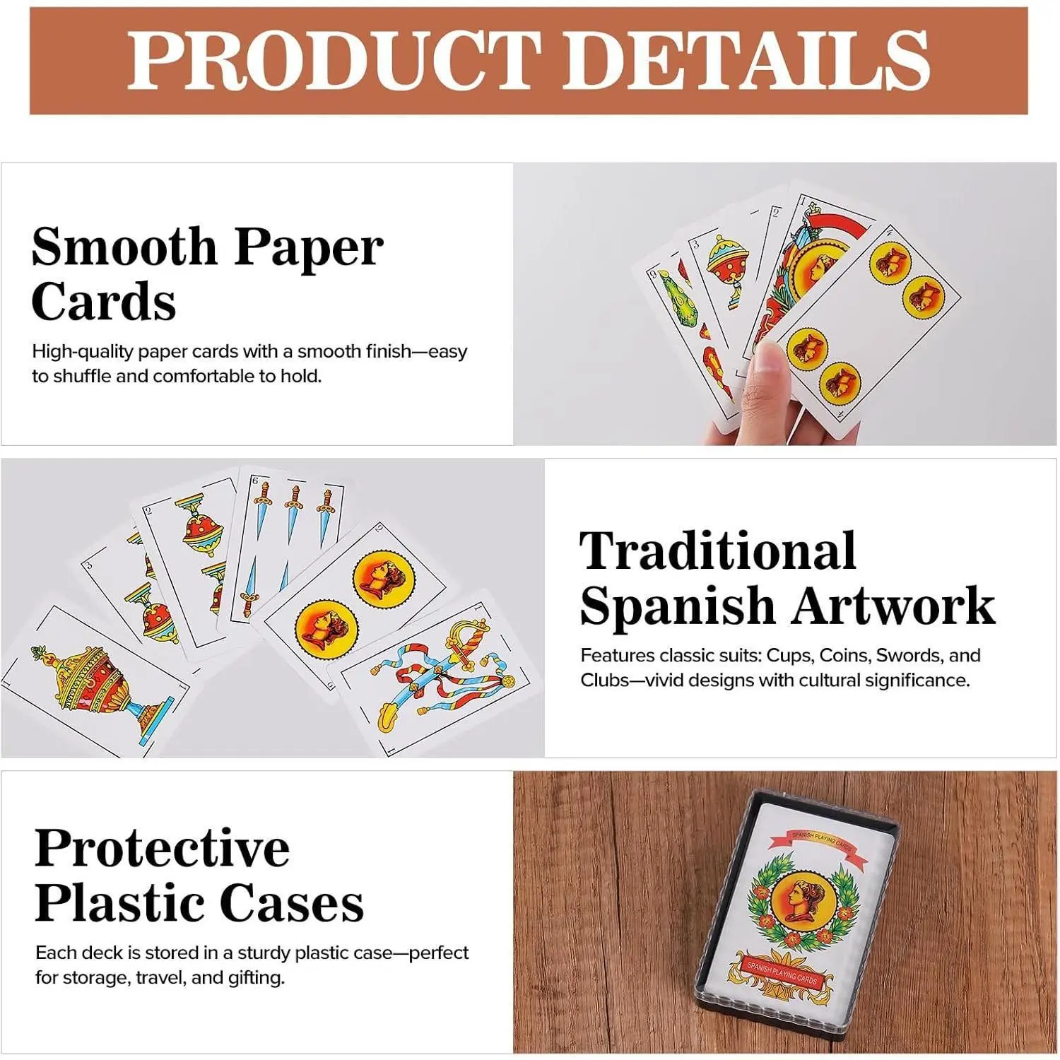 Authentic Spanish Design:Our Baraja Española cards is carefully designed to provide an authentic Spanish card-playing experience. Featuring a unique design inspired by traditional Spanish elements, it will transport you back to the games of your childhood. Perfect for those looking for "cartas españolas originales" and "baraja española".