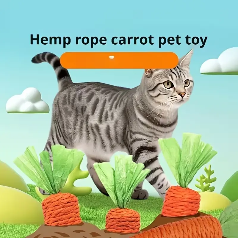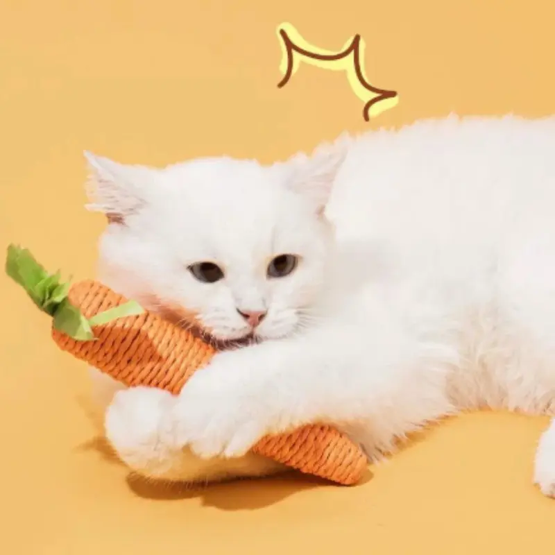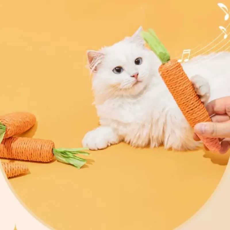 Cat Toy Self-Entertainment Carrot Chew Stick, Durable Bite Resistant Scratch Pad, Indoor Living Room Pet Supplies, Handmade Paper Rod Cat Game