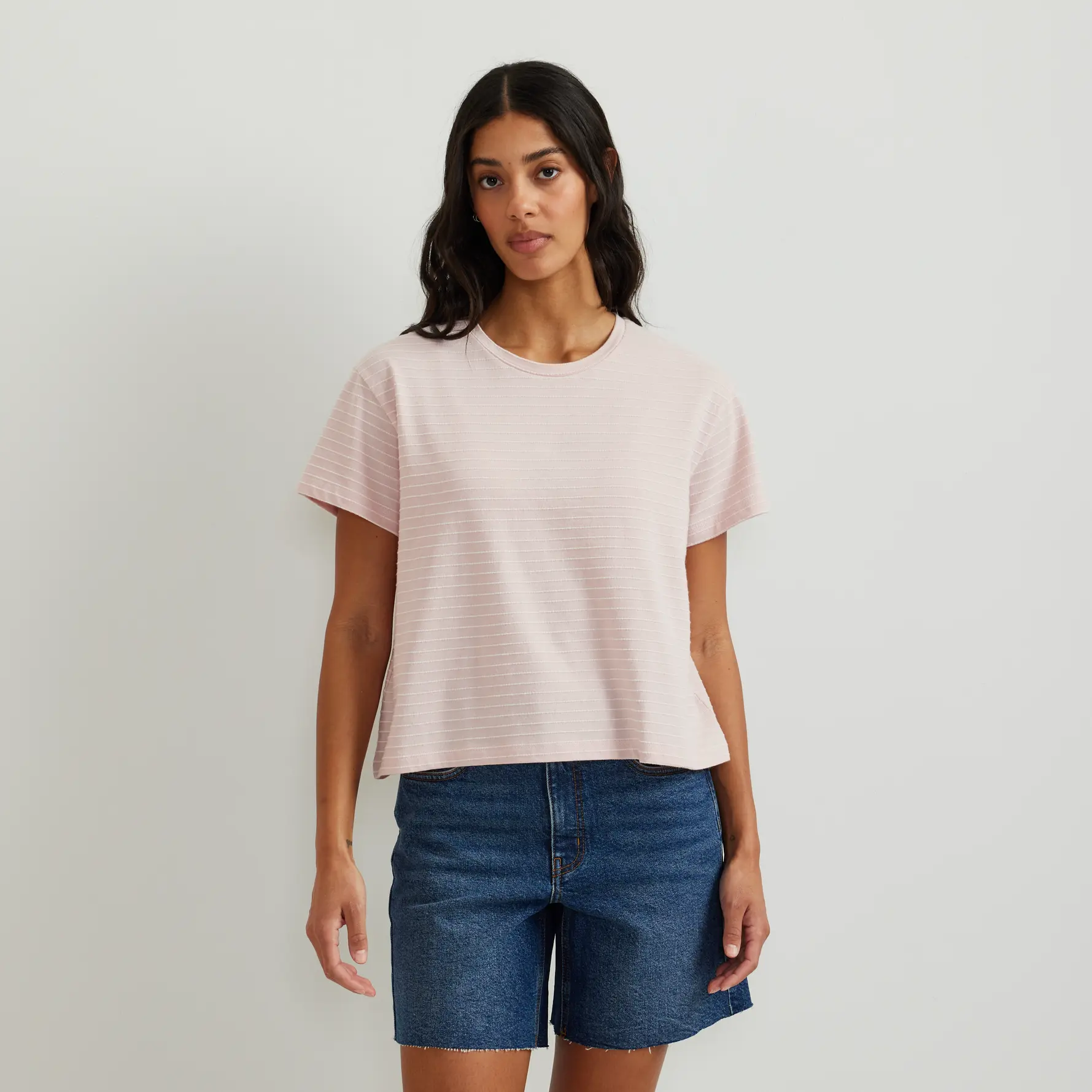 Textured, effortless, and on trend, the Lightwave Short Sleeve T-Shirt is designed to elevate your everyday style. A jacquard strip pattern adds dimension, while the soft cotton blend and relaxed silhouette deliver effortless comfort with a modern edge.