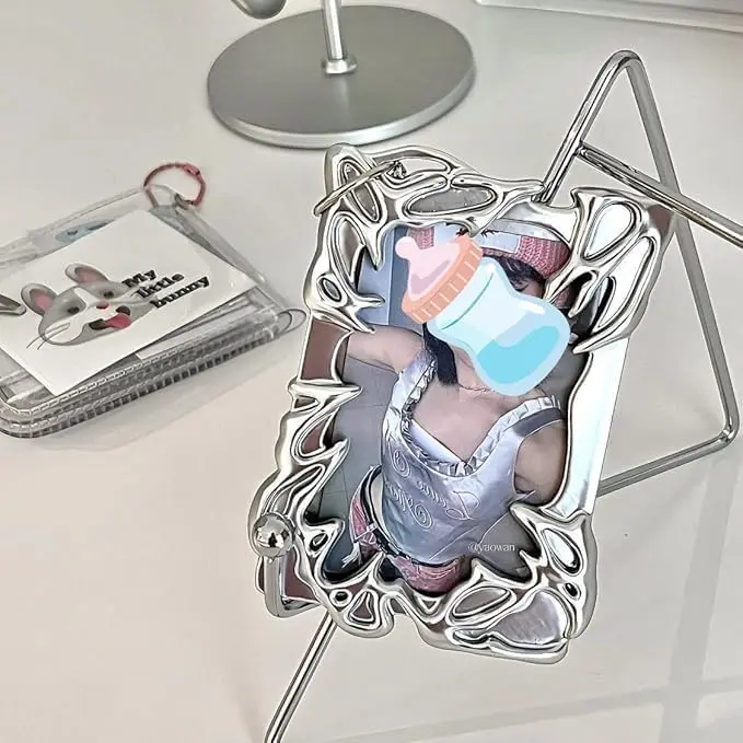 Show off your favorite photocard or keep your ID safe in style with this electroplated plastic frame holder. Designed with a sleek silver finish and an irregular aesthetic, this card case is both practical and eye-catching. The attached keychain makes it easy to clip onto bags, backpacks, or lanyards—perfect for students, office workers, or K-pop photocard collectors.
