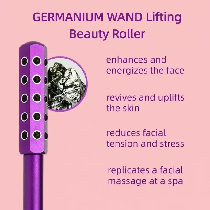 Professional Germanium Facial Roller with High Frequency Therapy – For Firming Skin, Reducing Wrinkles & Lymphatic Drainage | Rechargeable Purple Beauty Device | Dermatologist-Tested