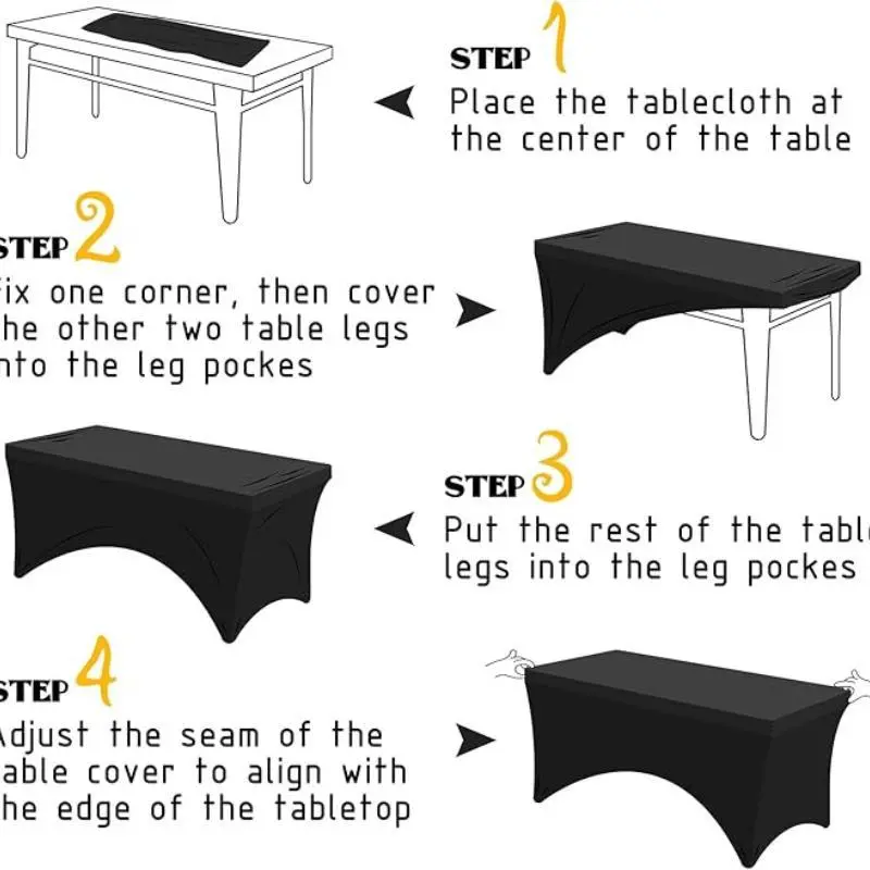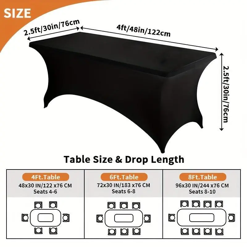 Size: 6 ft, fits most standard 6-ft tables, easy to cover and secure.