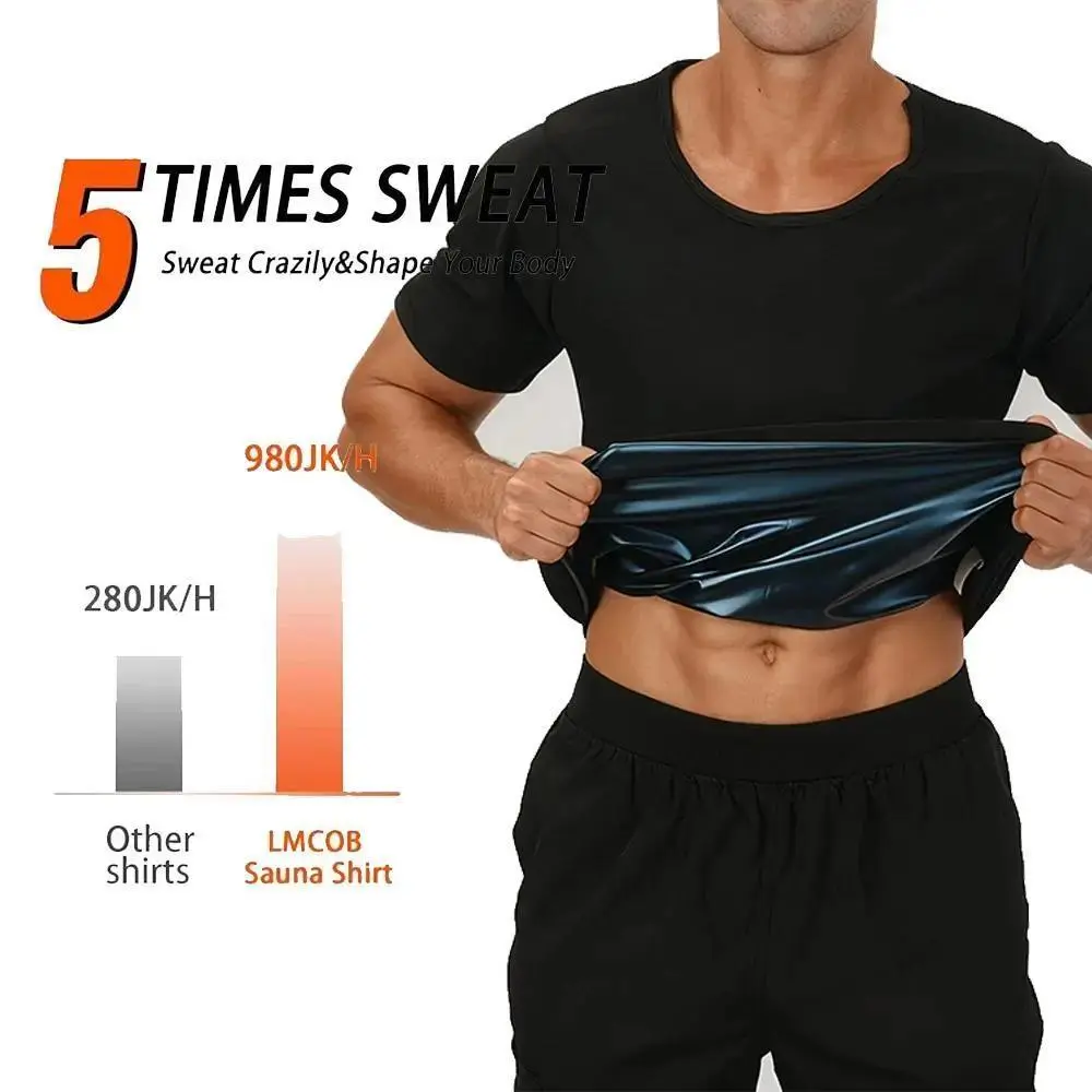 Sauna Shirt for Men, Tummy Control Compression Sweat Sauna Workout Suit, Gym Exercise Compression T-Shirt Waist Trainer Sweat Suit Short Sleeve Sports Shapewear