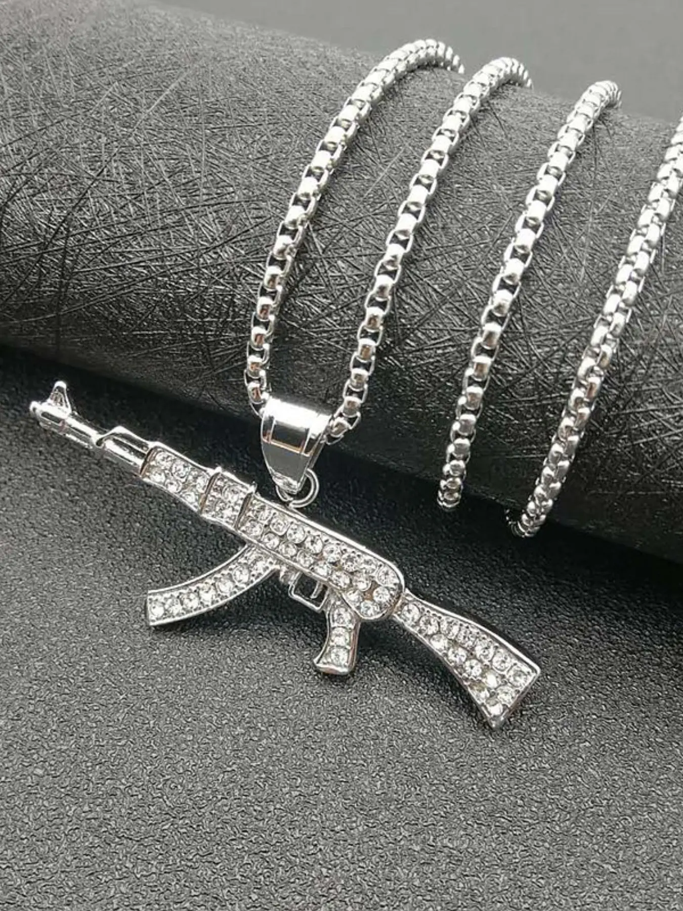 Trendy Hip Hop Jewelry, Titanium Steel Gold Plated Rhinestone Ak47 Pendant Necklace, Stylish Accessory for Men and Women