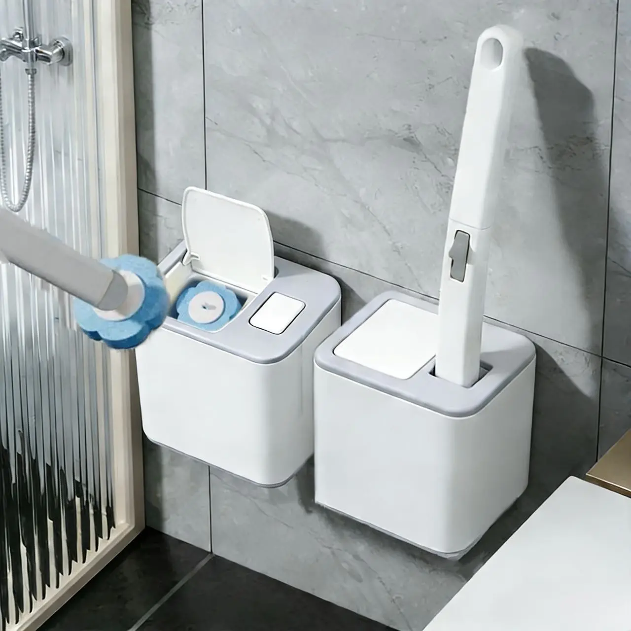 Disposable Toilet Brush Set with Automatic Flip Cover Hygienic Bathroom Cleaning Tool Replaceable Heads Smart No-Touch System Easy Clean Home Essential