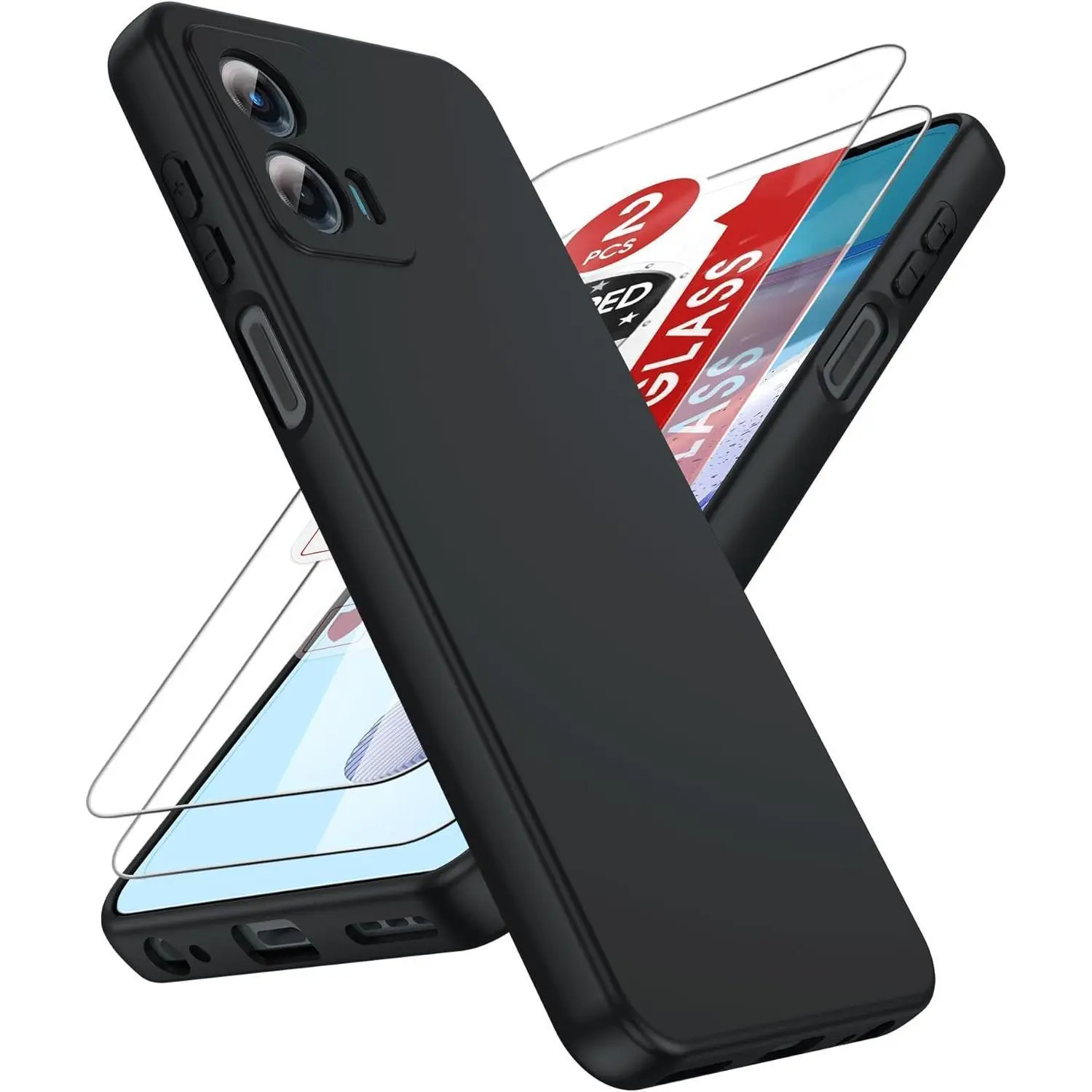 for Moto-G-2025 Case: [ ] Moto G 2025 Phone Case with【 Tempered Glass Screen Protector】, Slim & Anti-Scratch Silicone Motorola Moto G 5G 2025 Case (XT2513),Black