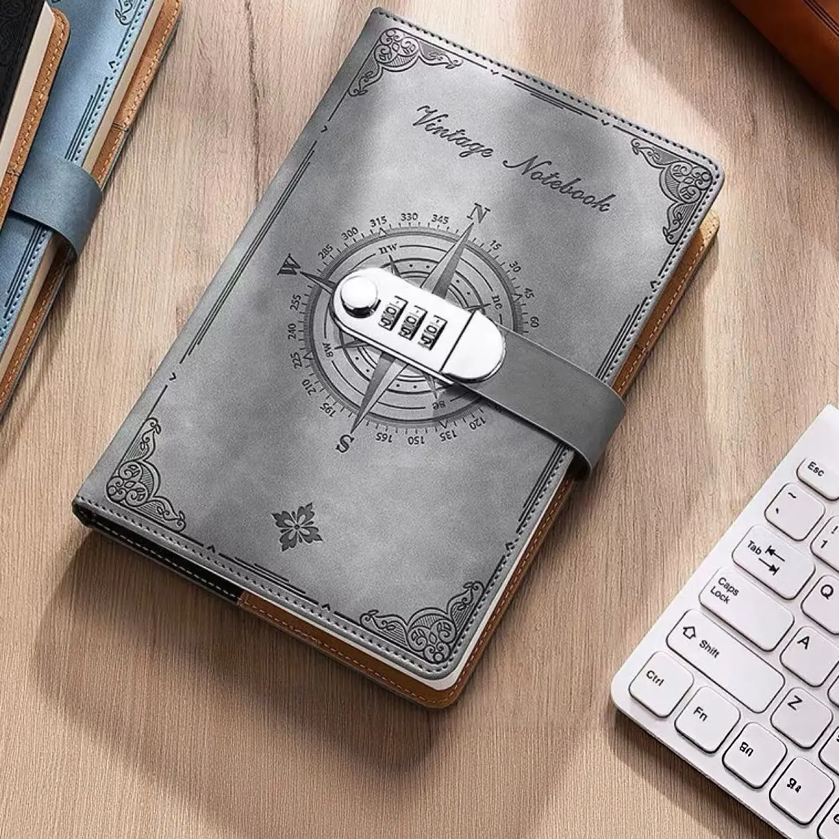 Single A5 Retro Color-Changing Leather Compass Password Lock Notebook, Unique Design, Durable Material, Perfect Gift Choice