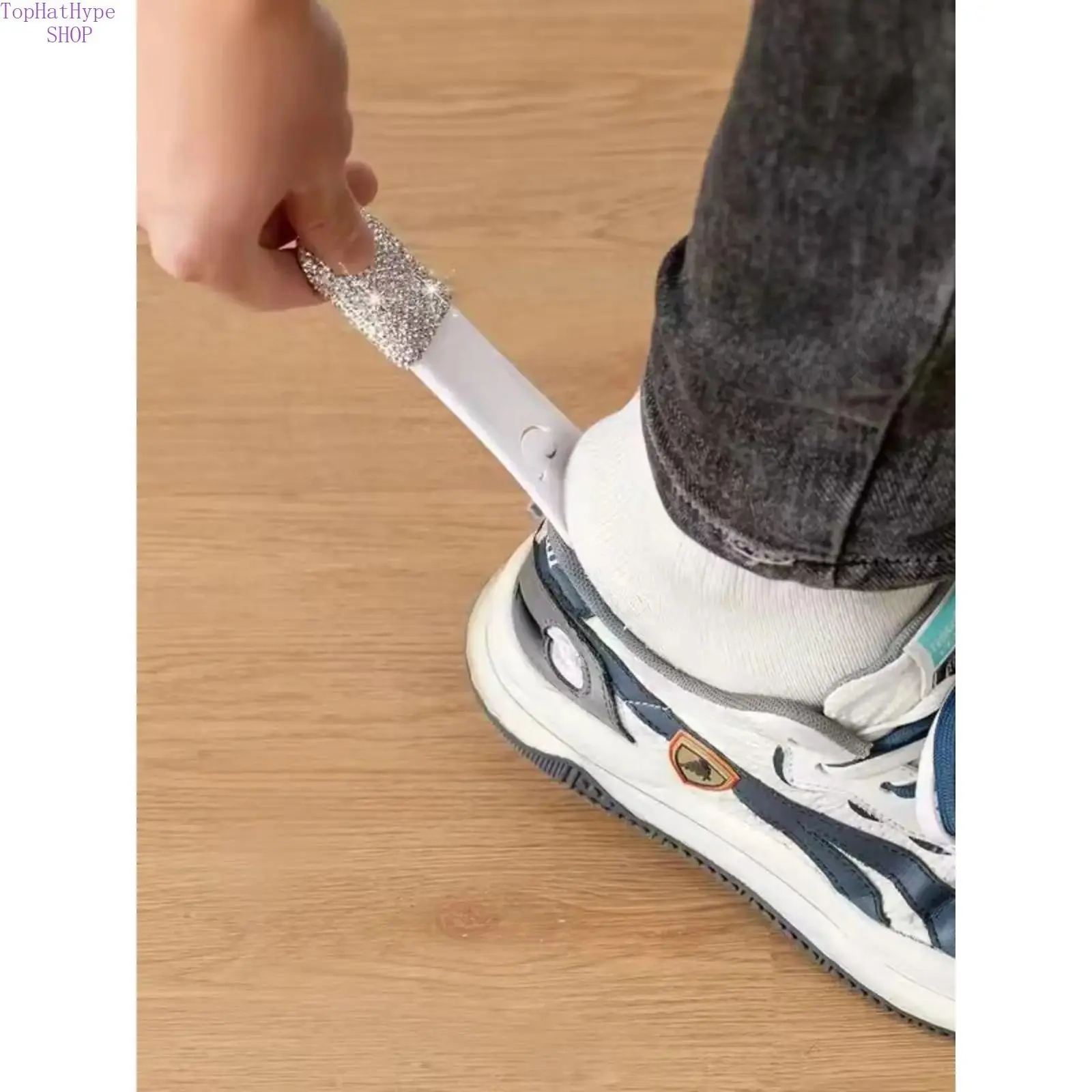 Bling Rhinestone Shoe Horn Keychain, Portable Sparkly Shoe Lifter Helper, Luxury On-the-Go Shoe Wearing Assistant Tool, Compact Lightweight Design for Daily Travel Shopping & Elderly Use