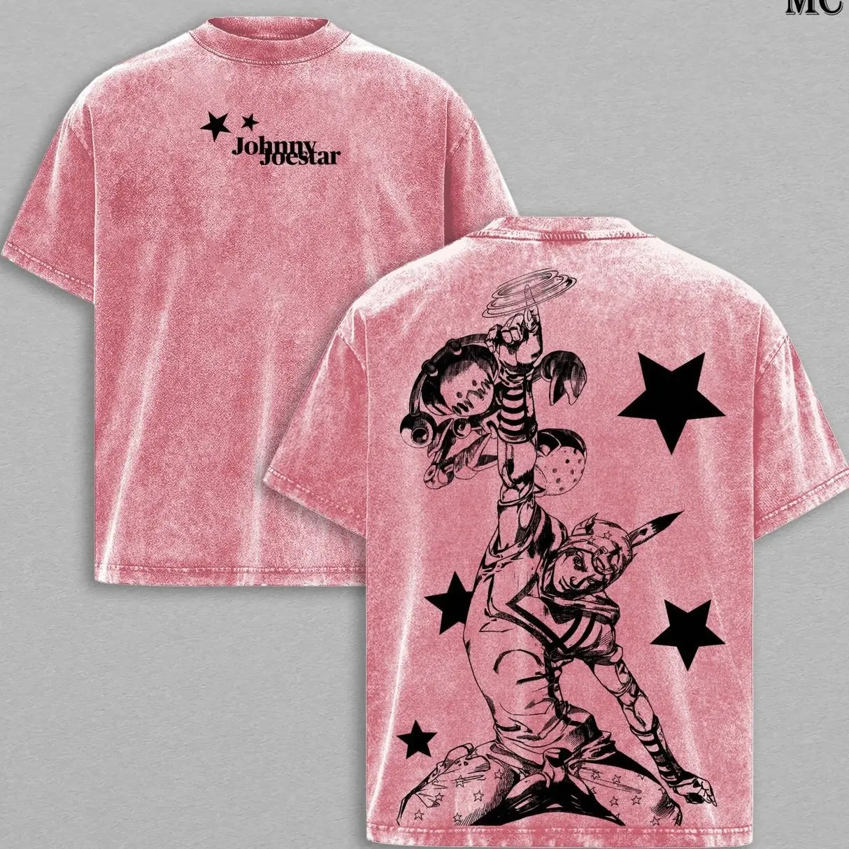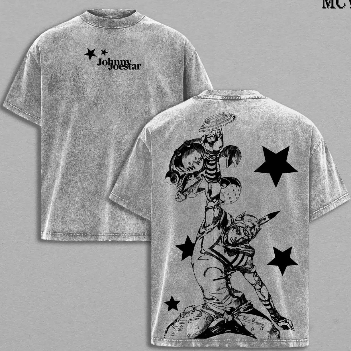 Johnny Joestar JoJo’s Bizarre Adventure Steel Ball Run Part 7 Anime Manga Graphic Double Printed Washed Tee, Menswear Heavy Cotton Unisex Oversize Streetwear Vintage 8A3