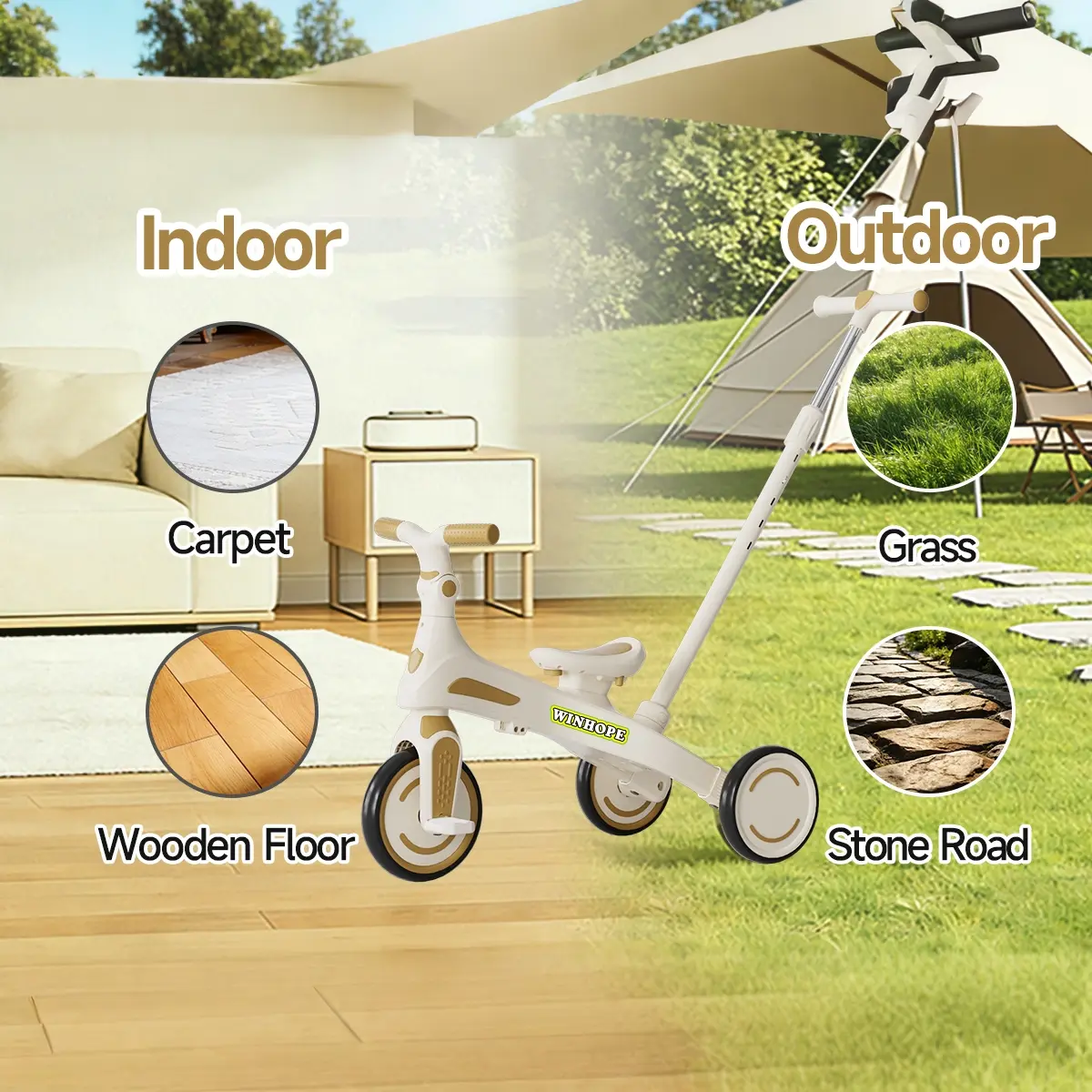 Suitable for various surfaces: smooth pushing on indoor carpets and wooden floors; flexible riding on outdoor grass and stone roads, meeting needs for home use, outings, leisure and other scenarios.