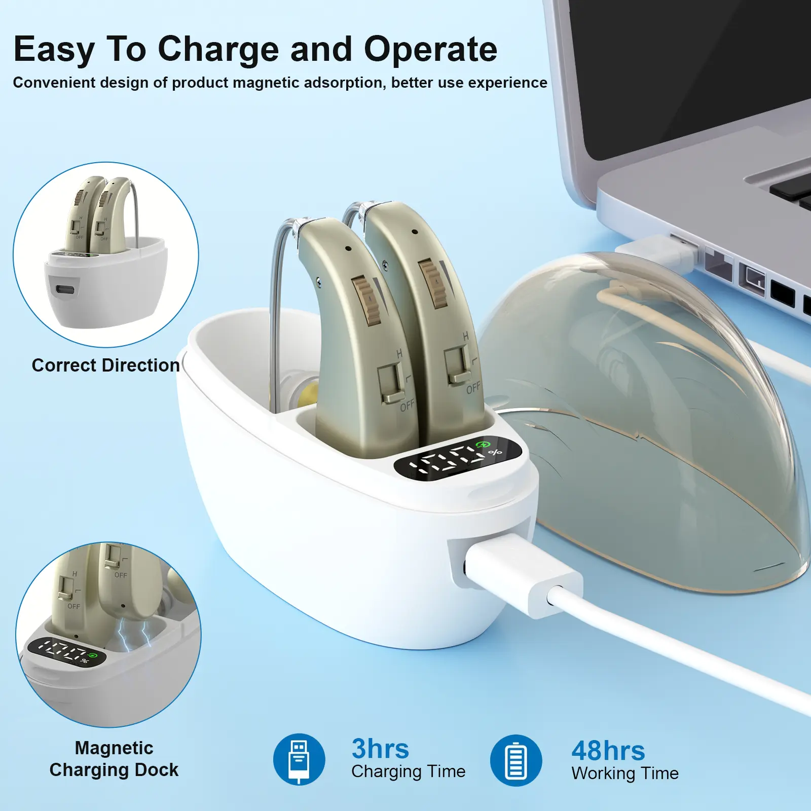 【Rechargeable Feature】: This product supports rechargeable functionality, ensuring ease of use and sustainability for daily hearing assistance.