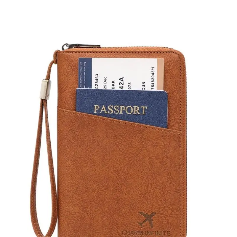 Large Family Passport Holder, RFID Blocking, Holds 5 Passports, Travel Ticket Card Storage Bag, Zipper Wallet, Detachable Wristband, Ideal Gift