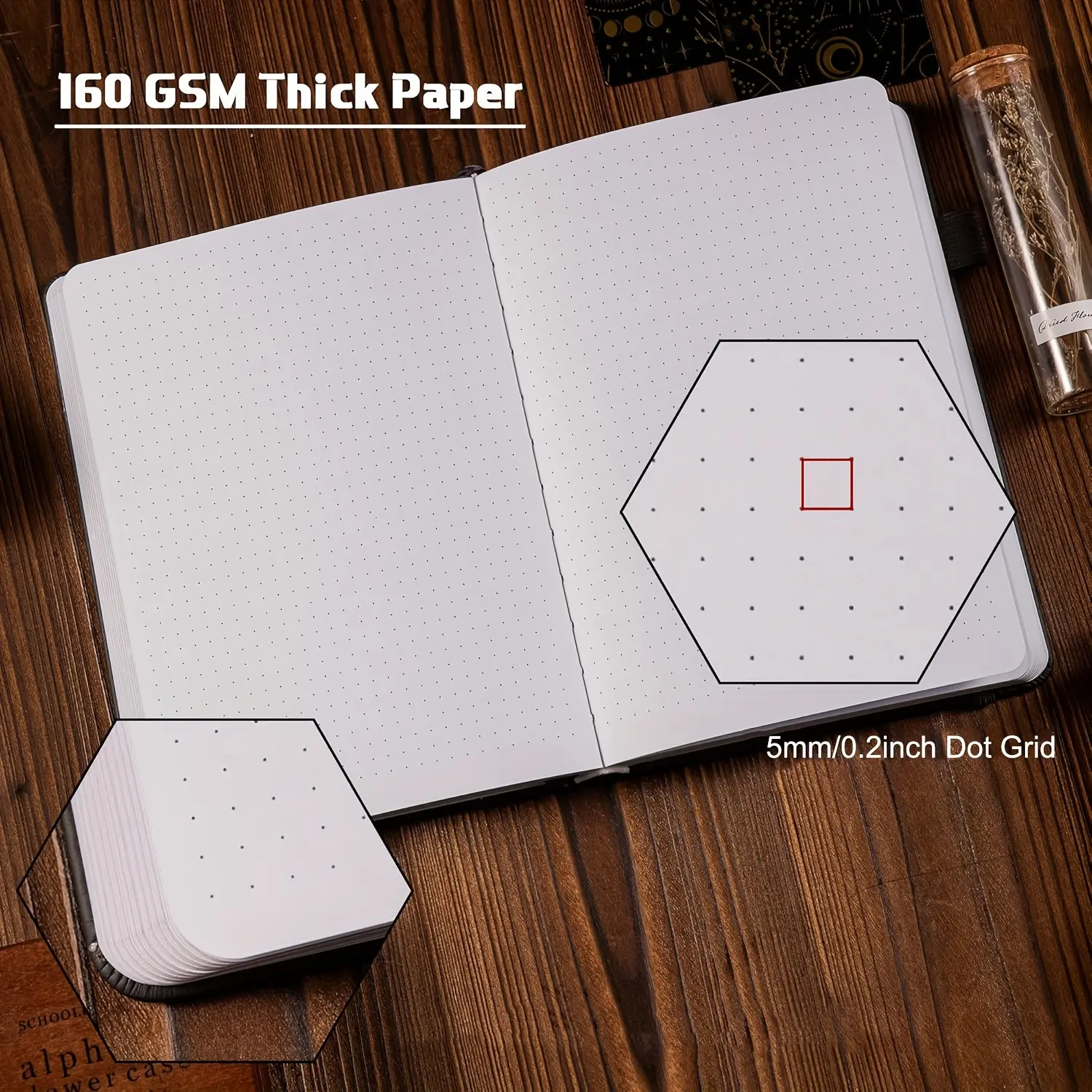 5. Bullet Dot Diary - 192 pages, 160gsm thick paper, A5 hardcover leather, dot grid notebook, suitable for women and men's work writing, bullet journal, drawing, 5.75 x 8.38