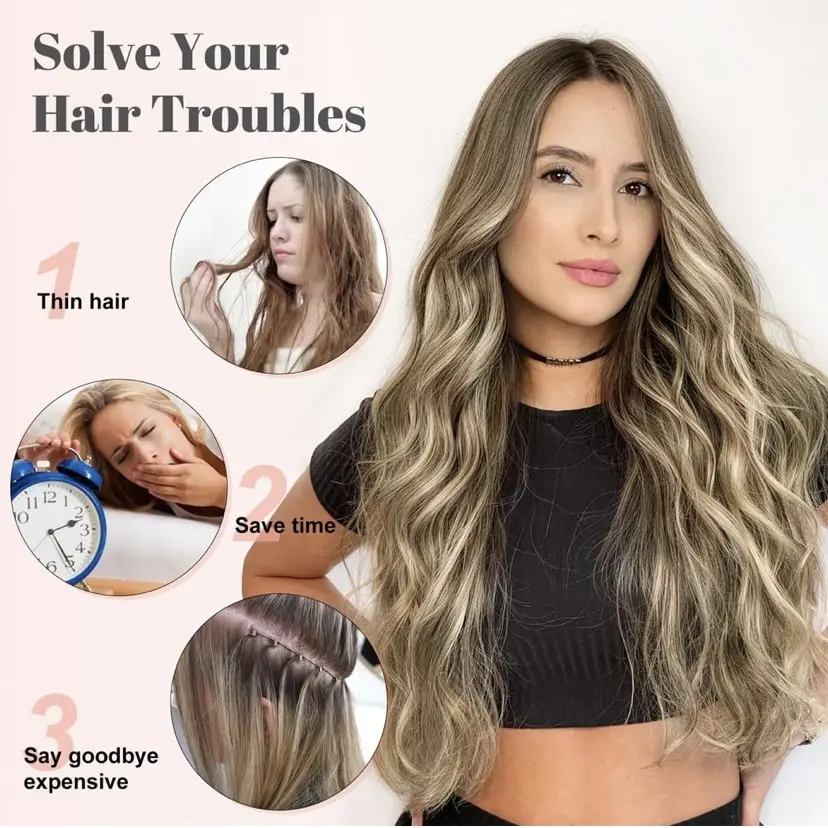 【From 9-to-5 to Gala Ready in 30 Seconds】 Elevate your hair game with the ultimate trend of 2026. This premium Brown Mix Ash Blonde one-piece extension is designed for the modern woman who demands high-fashion style without the salon price tag. Featuring a sophisticated Sun-Kissed Balayage, this piece adds instant 3D volume and "That Girl" confidence to any look.