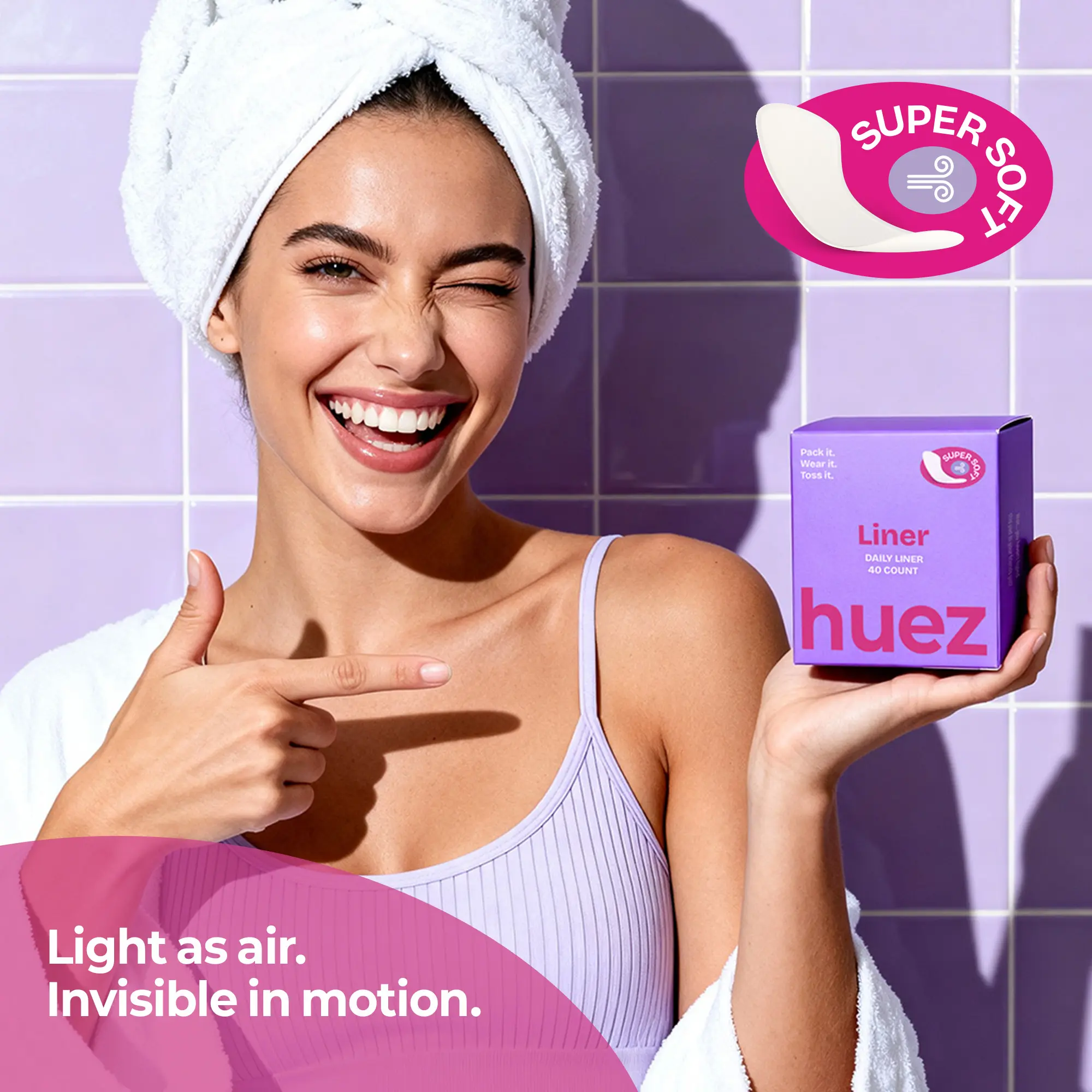 Experience the ultimate daily comfort with Huez. Our liners are designed for those who seek a "Super Soft & Super Dry" experience every single day.