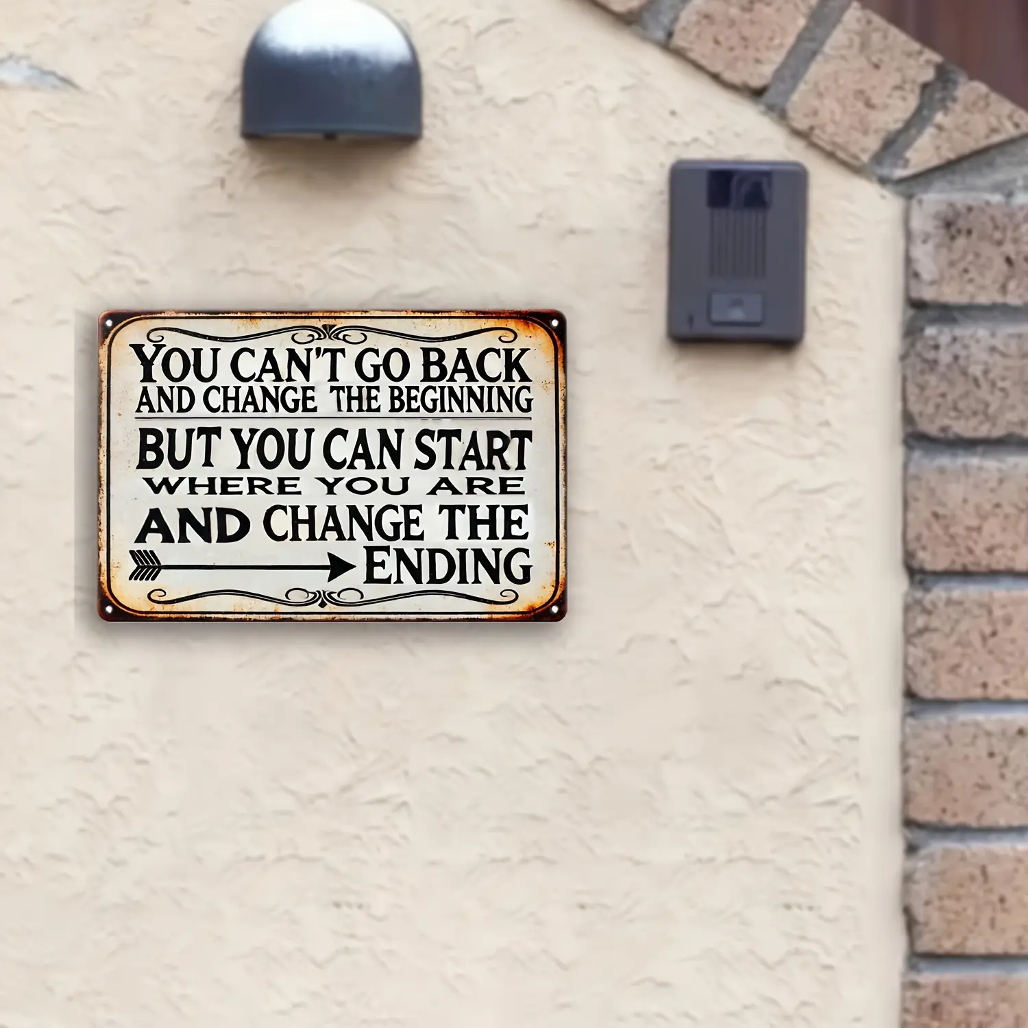 Motivational Metal Wall Decor Sign Inspirational Quote Plaque for Home Office with PreDrilled Holes Easy Hanging No Wiring Needed Waterproof Durable Business Cafe Garage Bathroom Decor Change Your Ending 2D Flat Art