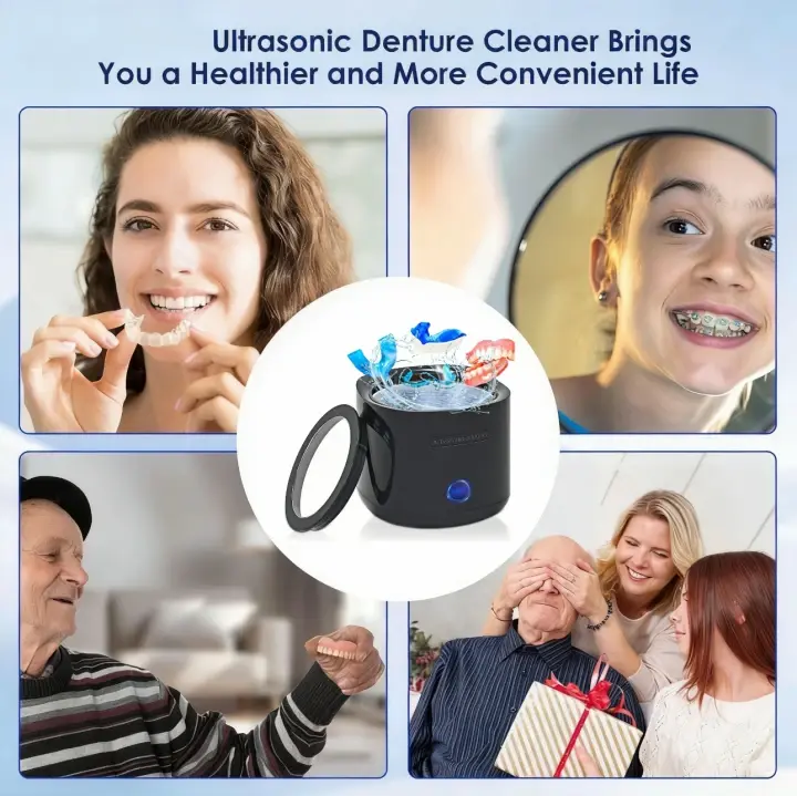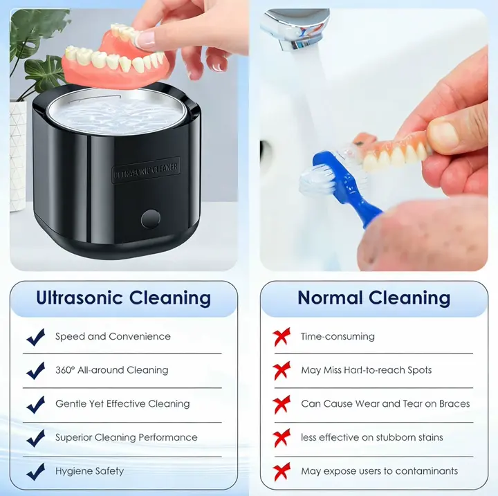 ·PORTABLE AND VERSATILE: This Ultra sonic dental cleaning pod is compact and lightweight, making it easy to take with you on the go. Perfect for the elderly with dentures, friends with retainers, sports enthusiasts with mouth guards, and anyone who wears jewelry.