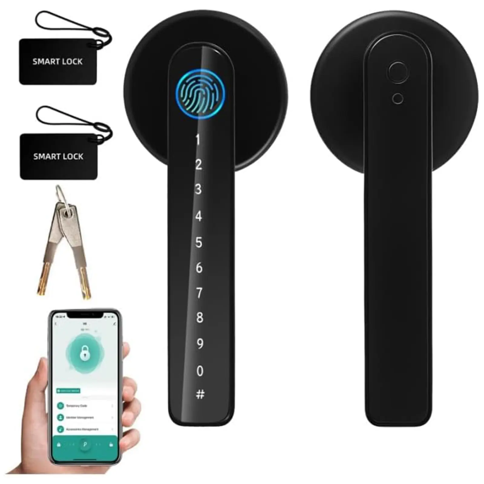 Fingerprint Door Lock with Handle Keyless Entry Door Lock with App Control/Key/IC Card for Bedroom Home Hotel Office Apartment