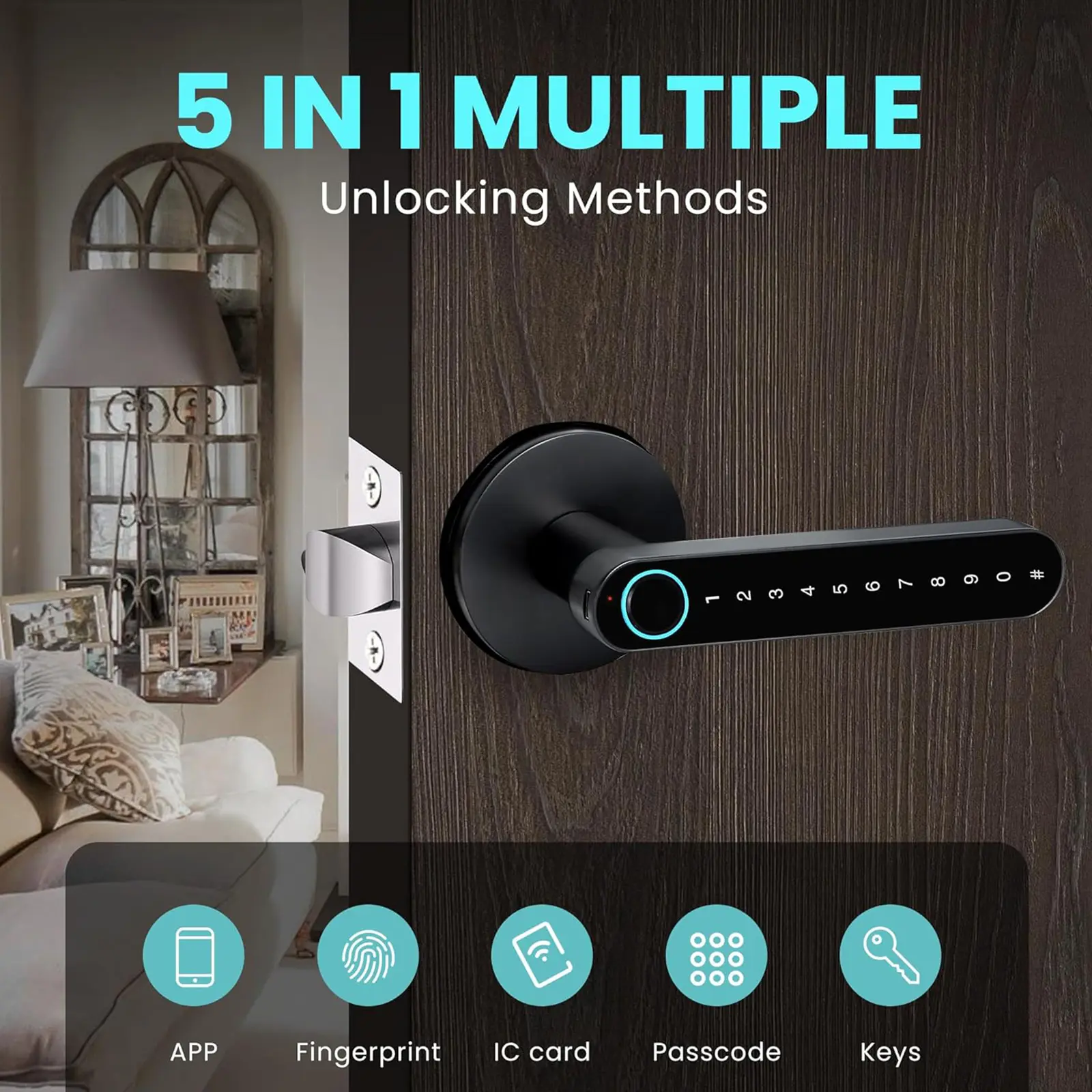 2.Flexible Entry Options: Enjoy multiple unlocking methods with this biometric door knob, including fingerprint identification, phone app control, password, IC card, and mechanical key for a truly keyless entry door lock experience suited to every user.