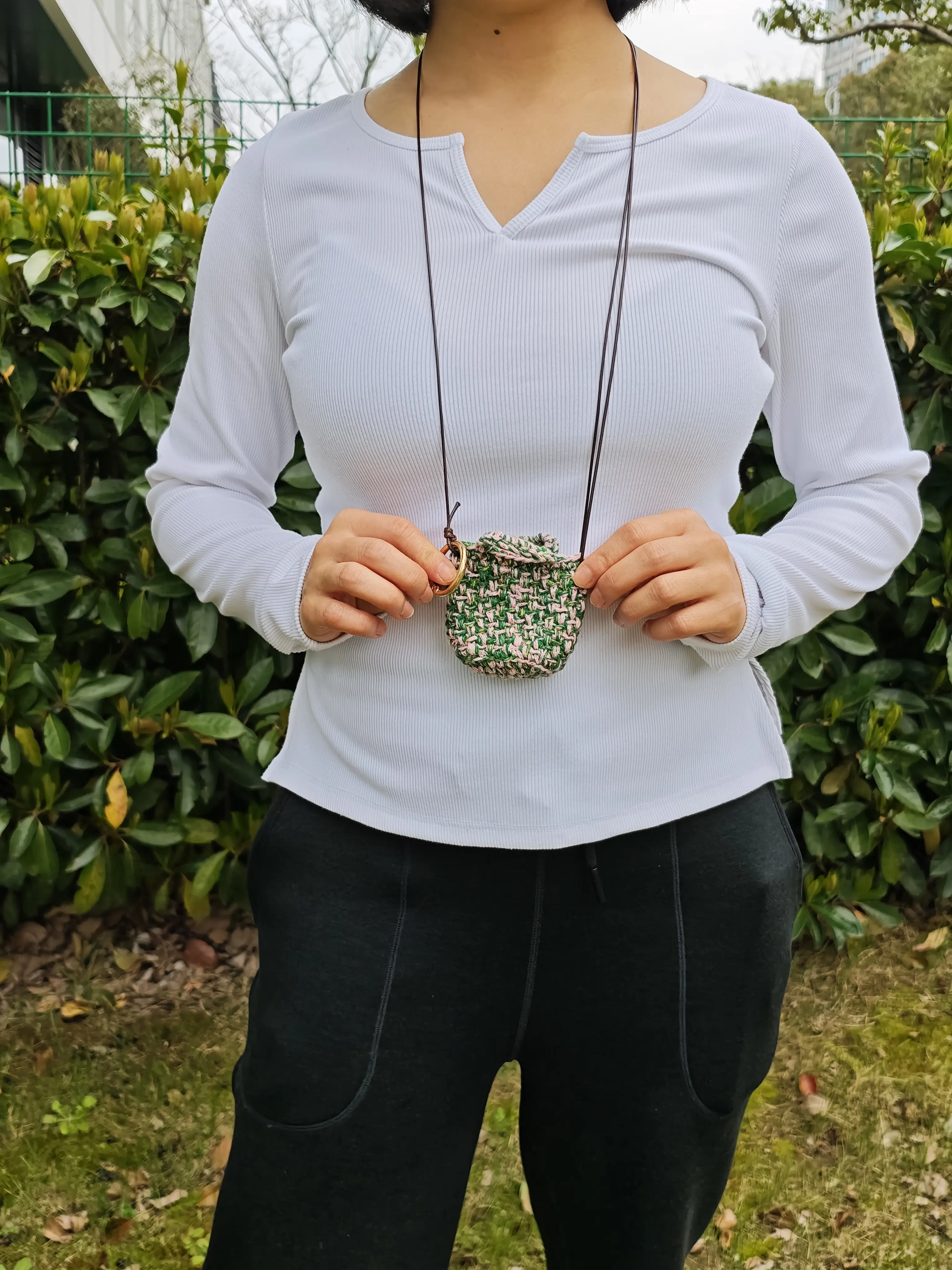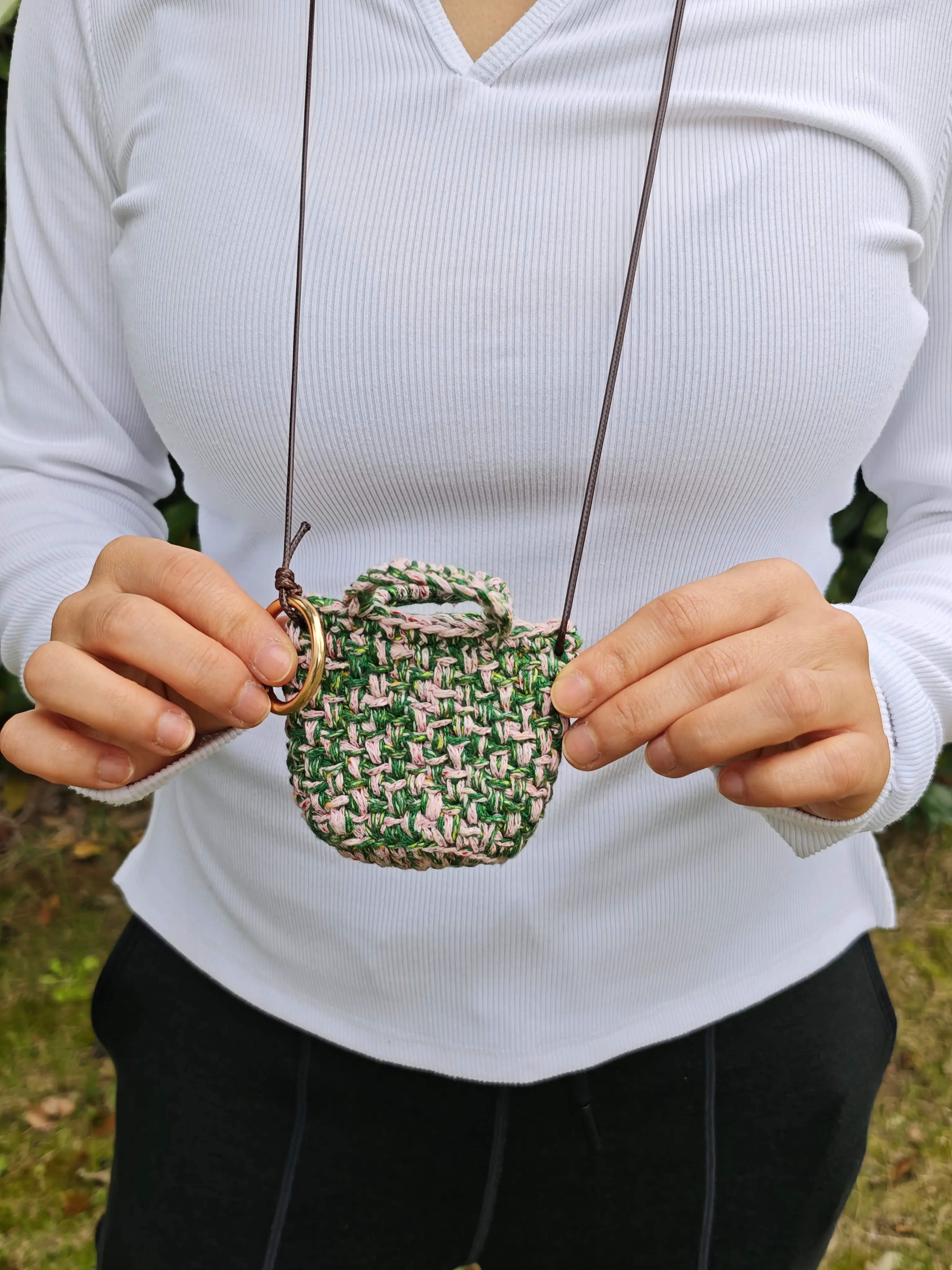 Crochet Linen-Cotton Yarn Pouch | Mini 2-in-1 Crossbody/Necklace Earbud Case