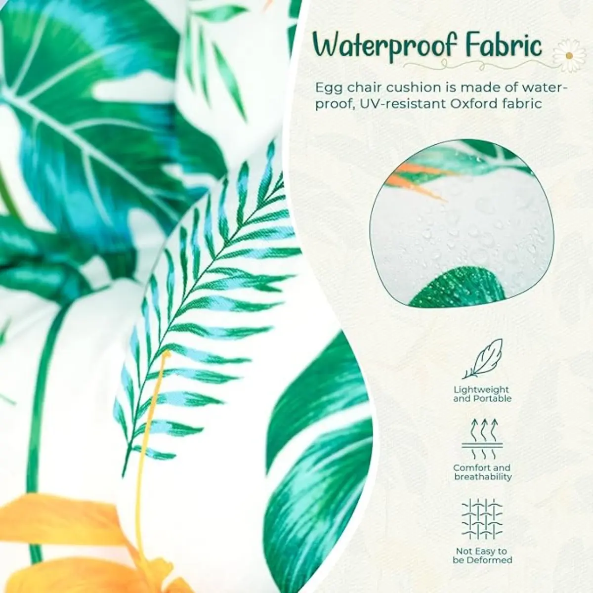 ·Stylish Design: Uthem's designers have created a pattern for our egg pads that suits the style of the patio, using the latest 3d painting technology to ensure the durability of the pattern. Egg chair cushion perfectly embellishes your patio and turns it into a more beautiful dreamy