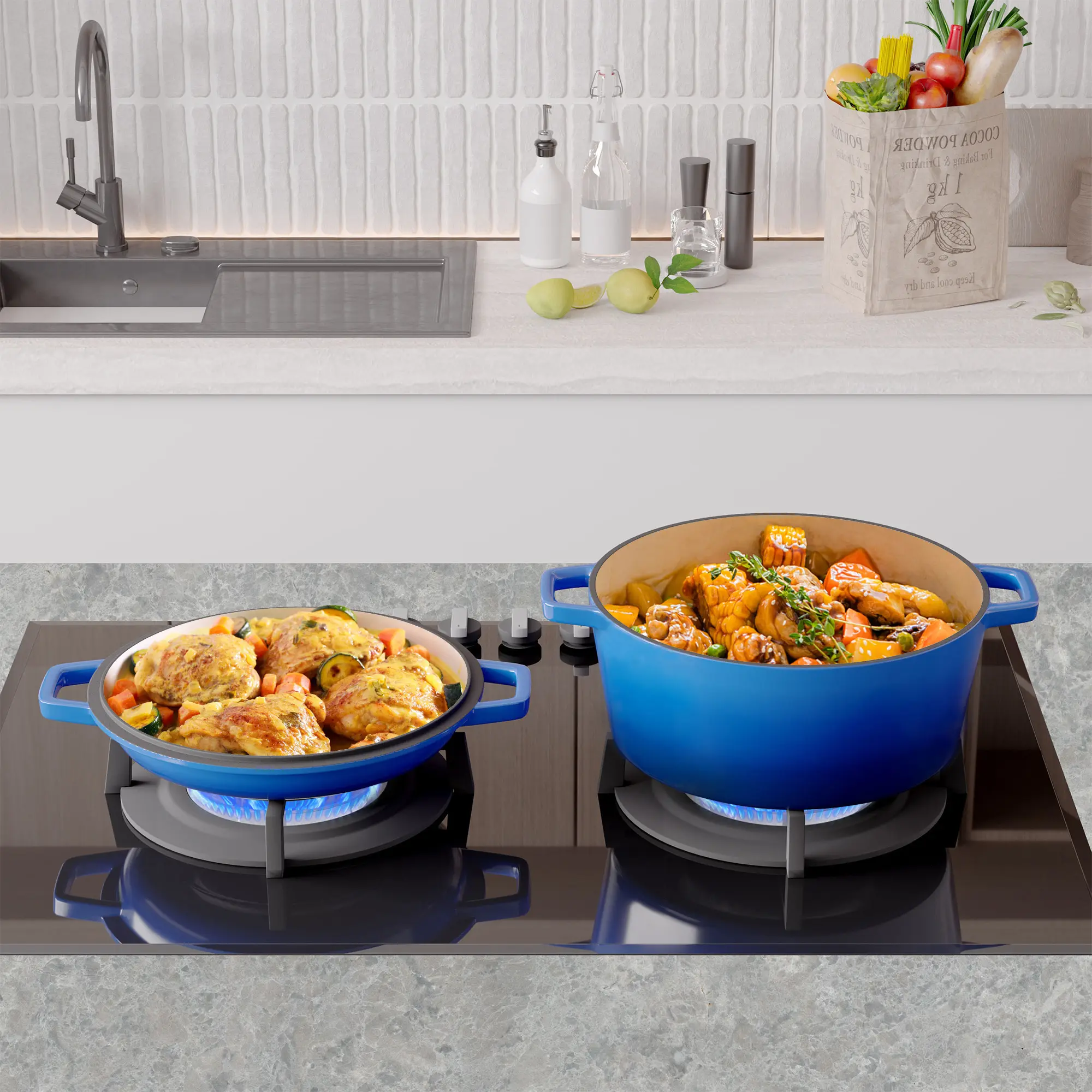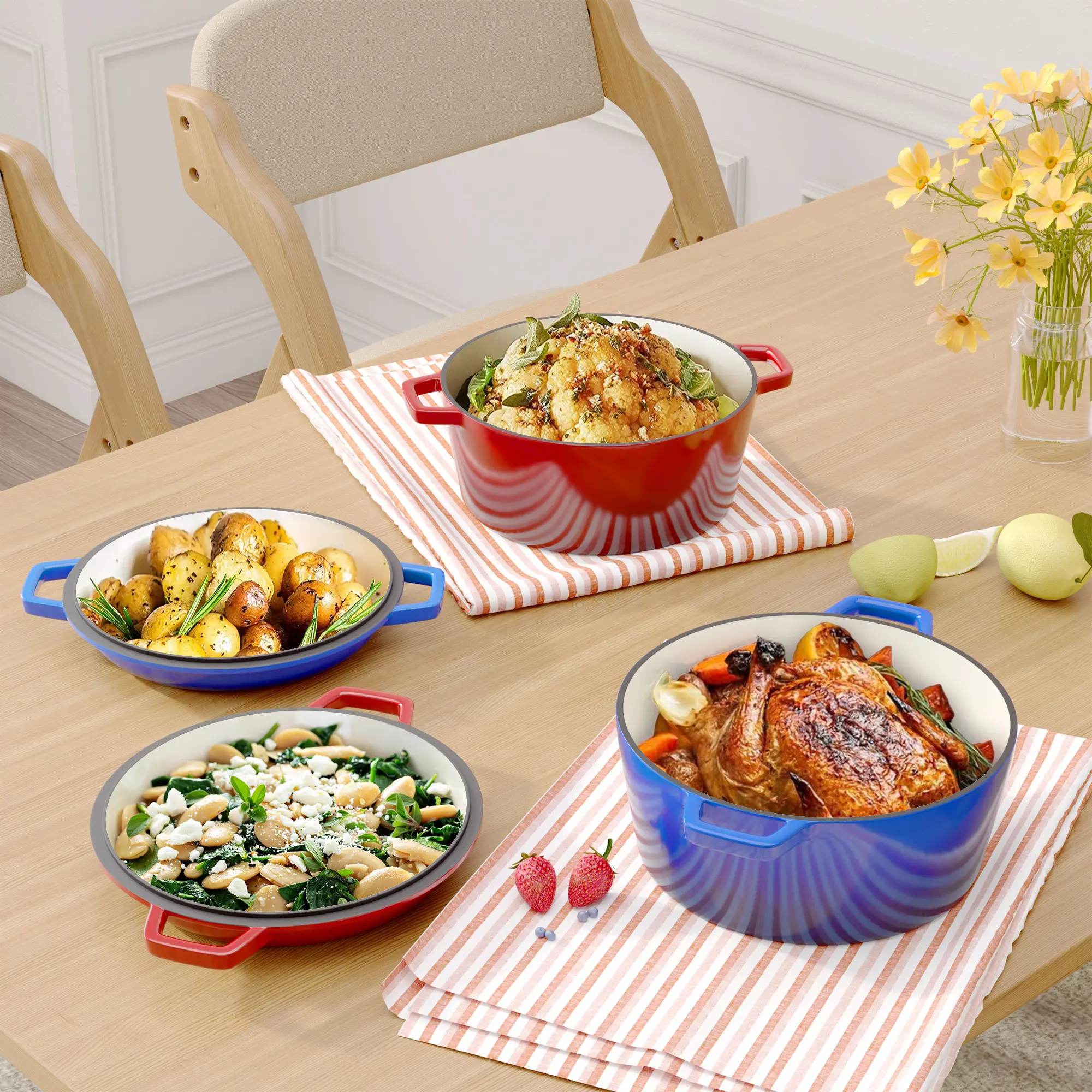 26cm 2-in-1 Enameled Cast Iron Dutch Oven with Skillet Lid, Heavy Duty Soup Pot for Braising, Baking and Daily Cooking braiser pan