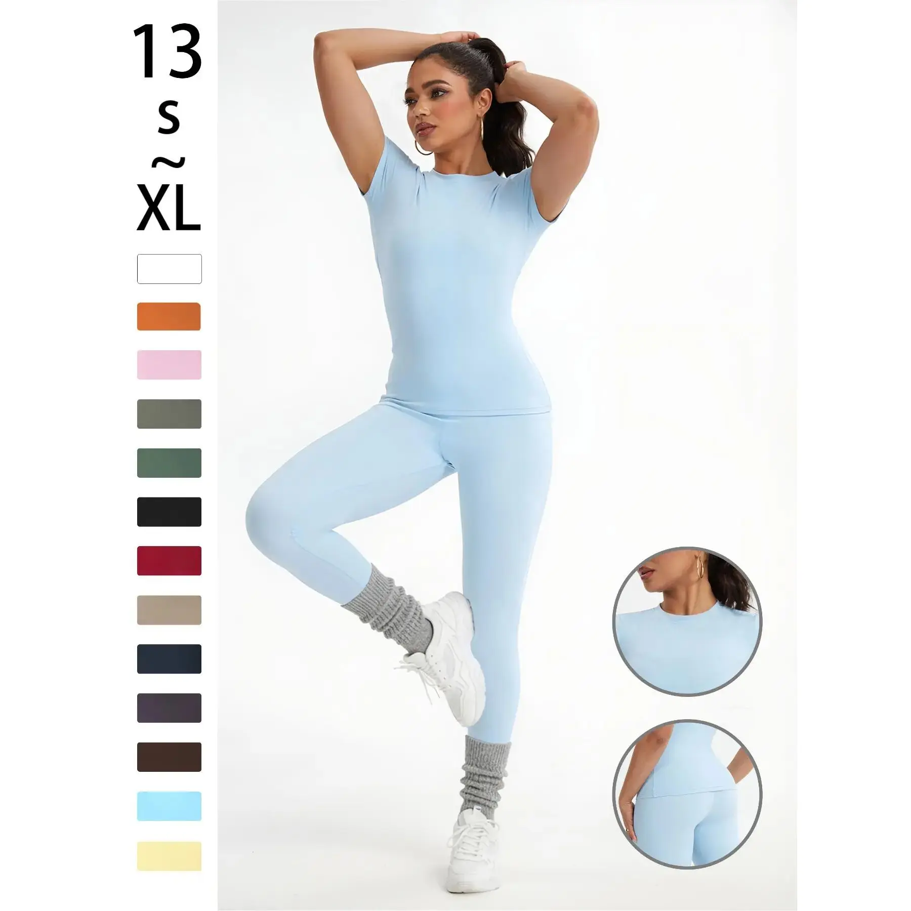5. Women's Sportswear Set, Slim-Fit Round Neck Short Sleeves & High-Waisted Yoga Pants, Ideal for Gym Running Outdoor Activities, Stretchy Suit Set, Fitness Outfits, Workout Running Outfits