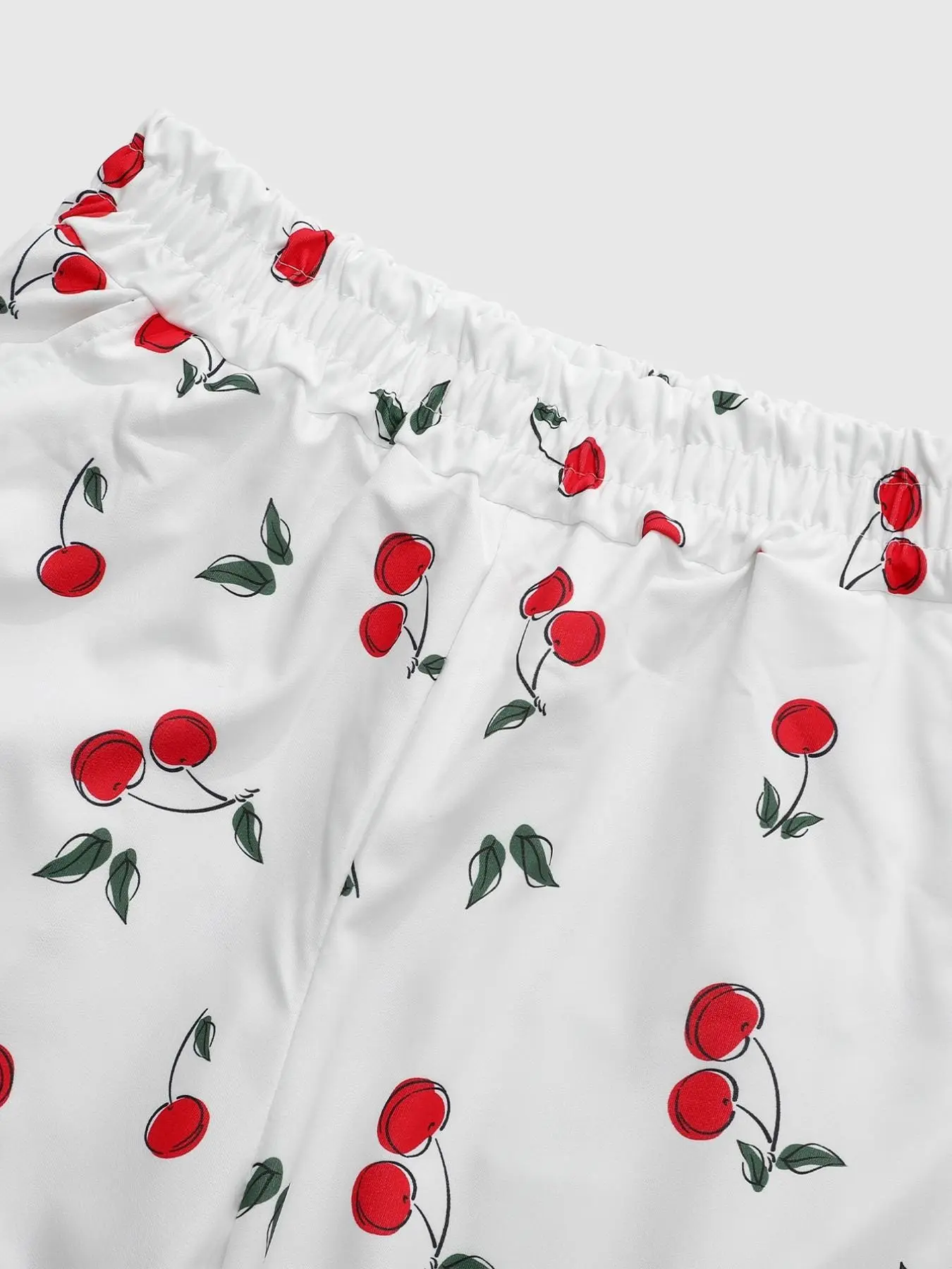 【Cherry Print】: Features a cute cherry print pattern, adding a playful touch to your outfit.