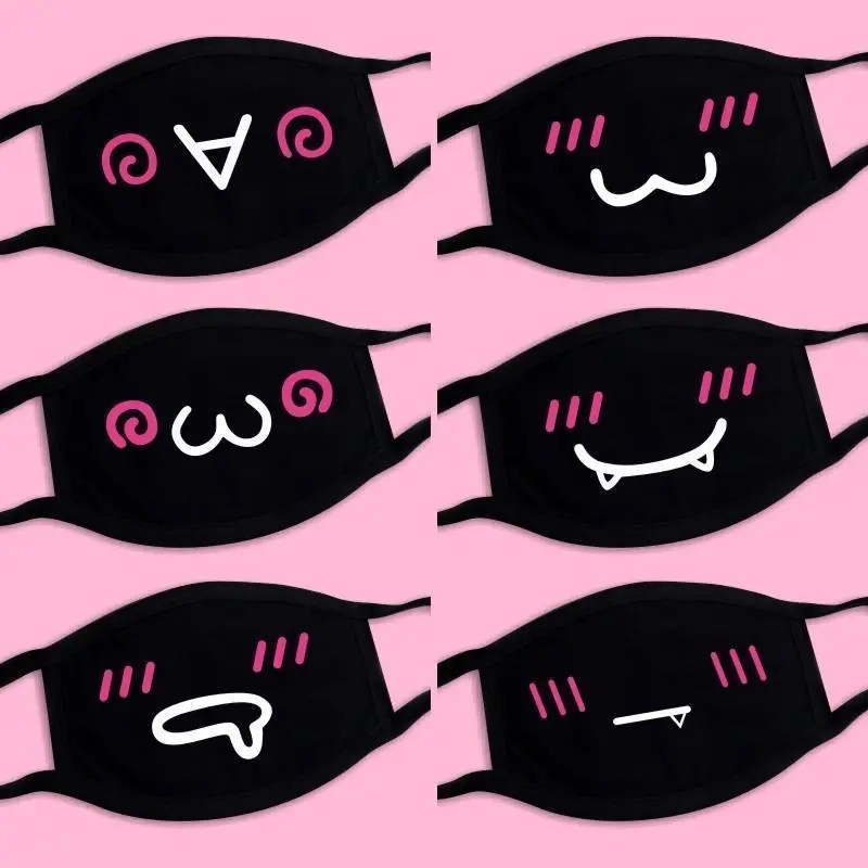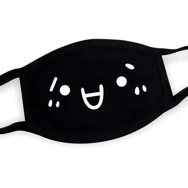 Super Cute Expression Smile Breathable Mouth Face Mask For Korean Black Kpop Unisex Kawaii Face Mouth Muffle Mask Cotton Anime