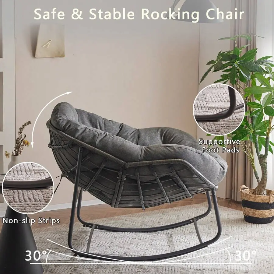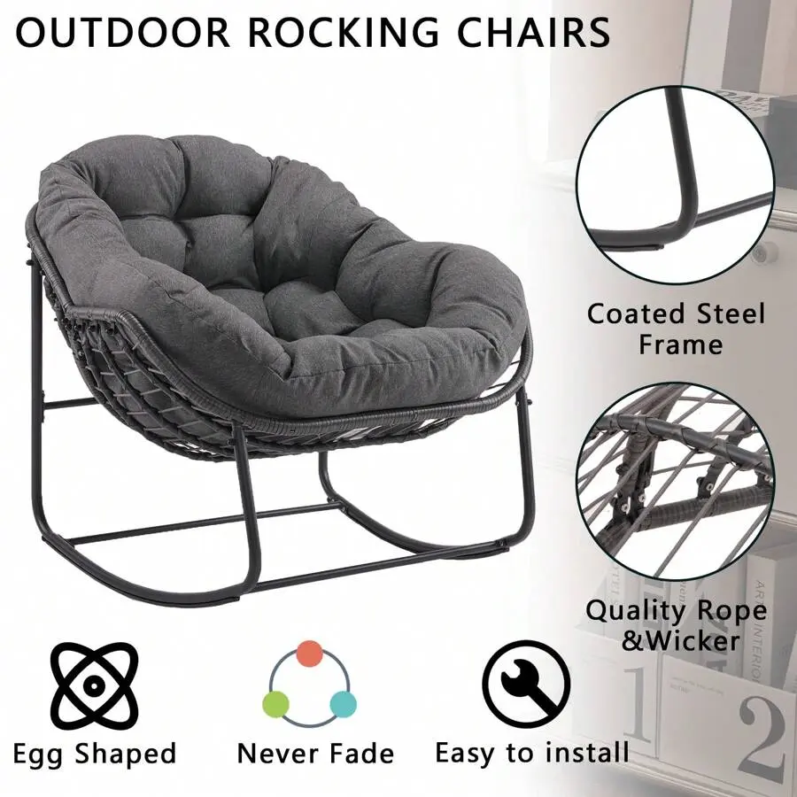 Wicker and Rattan Rocking Chair- Constructed with durable, high-quality powder-coated steel hardware and wicker and rattan frame with egg shaped design that comfortably conforms to your seating position.Steel legs rock easily with it's curved design.Supports up to 330 pounds comfortably.Overall Size- 37.20"W x 43.70"D x 31.50 "H.