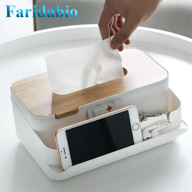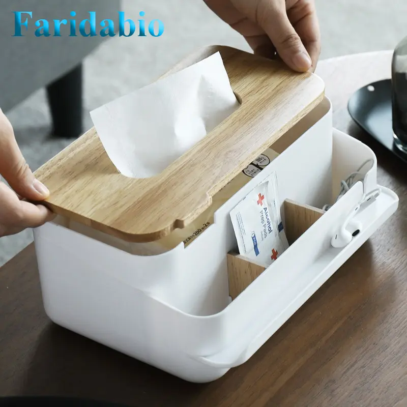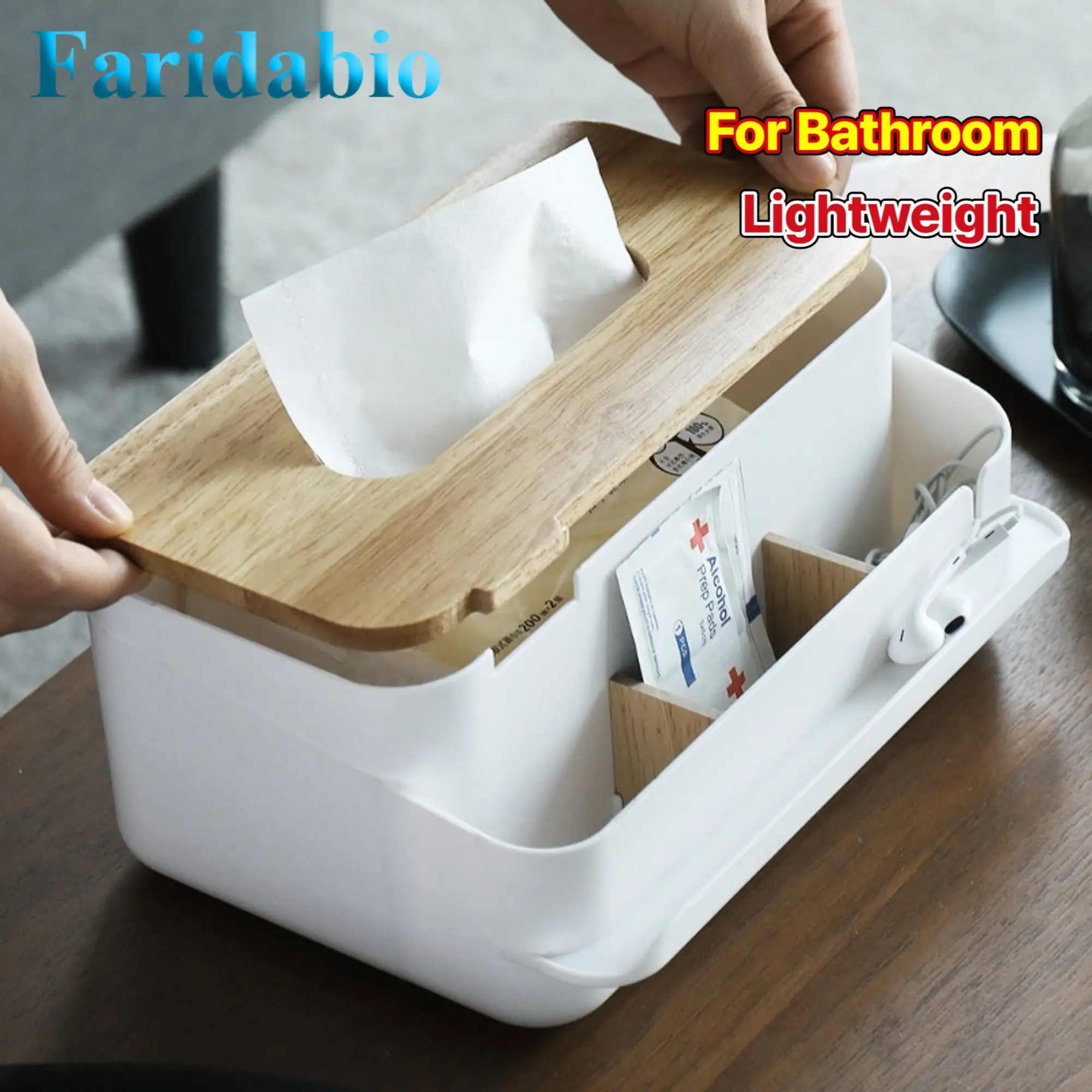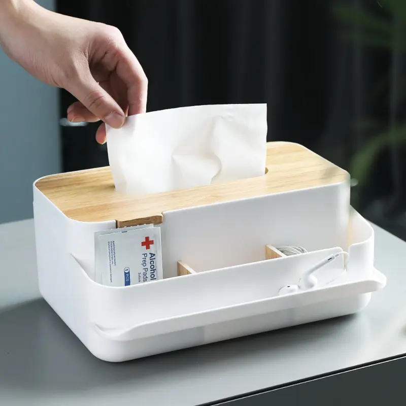 1pc Multifunctional Wooden Tissue Box with Lid - 3-Compartment Organizer for Tissue Paper, Napkins, and Small Items, Durable Plastic Construction, Ideal For Living Room And Bedroom Storage, Tissue Box For Bathroom, Bedroom Organization