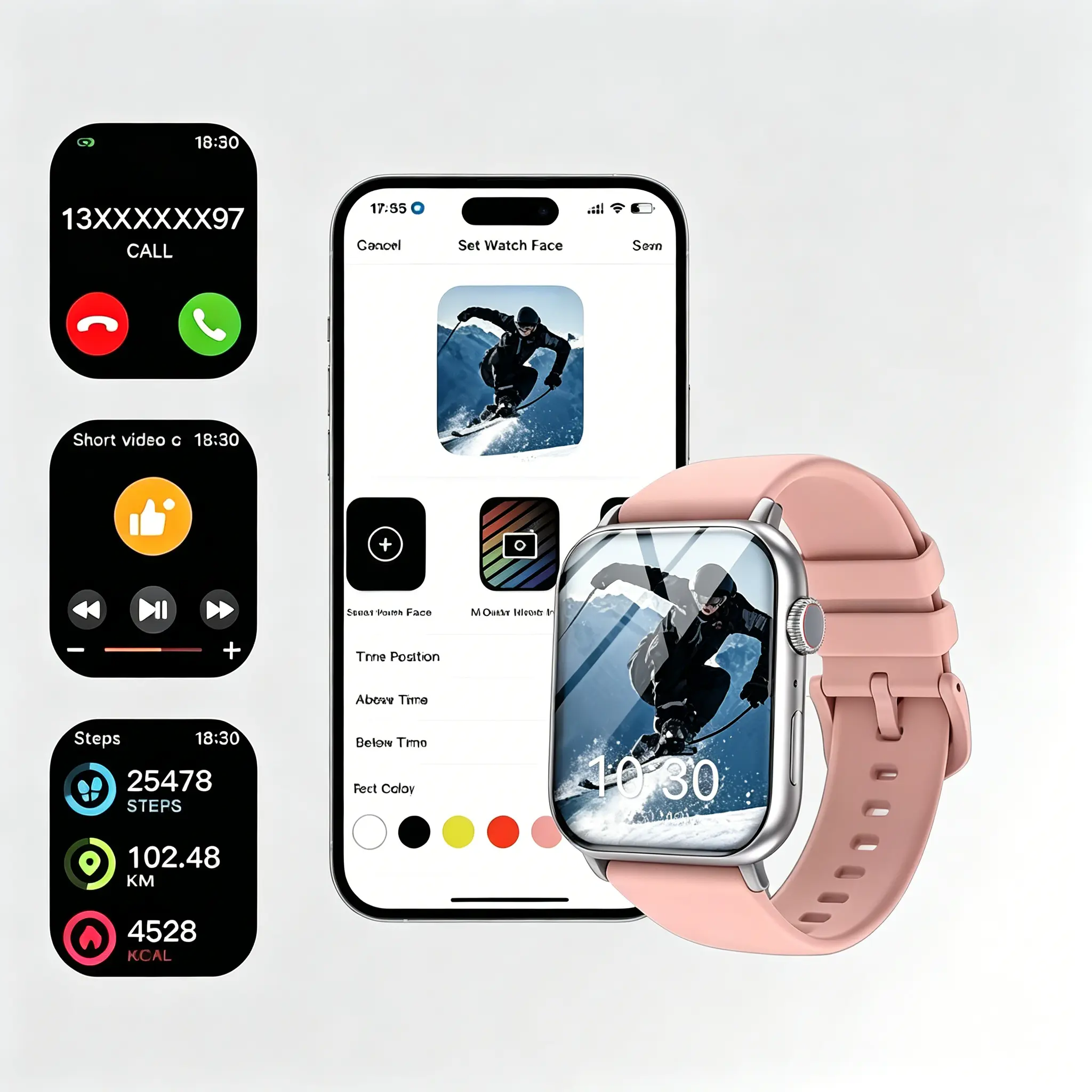 2026 Valentine's Day Gift New Smartwatch Black & Pink Wearable Device Super Bowl HeartRate Sleep Monitor 100+ Sports Modes IP68 Waterproof Smartwatch Gift for Men Women Android Tracker with HD TouchScreen & Call Functionality - Smartphone, Wristwatch
