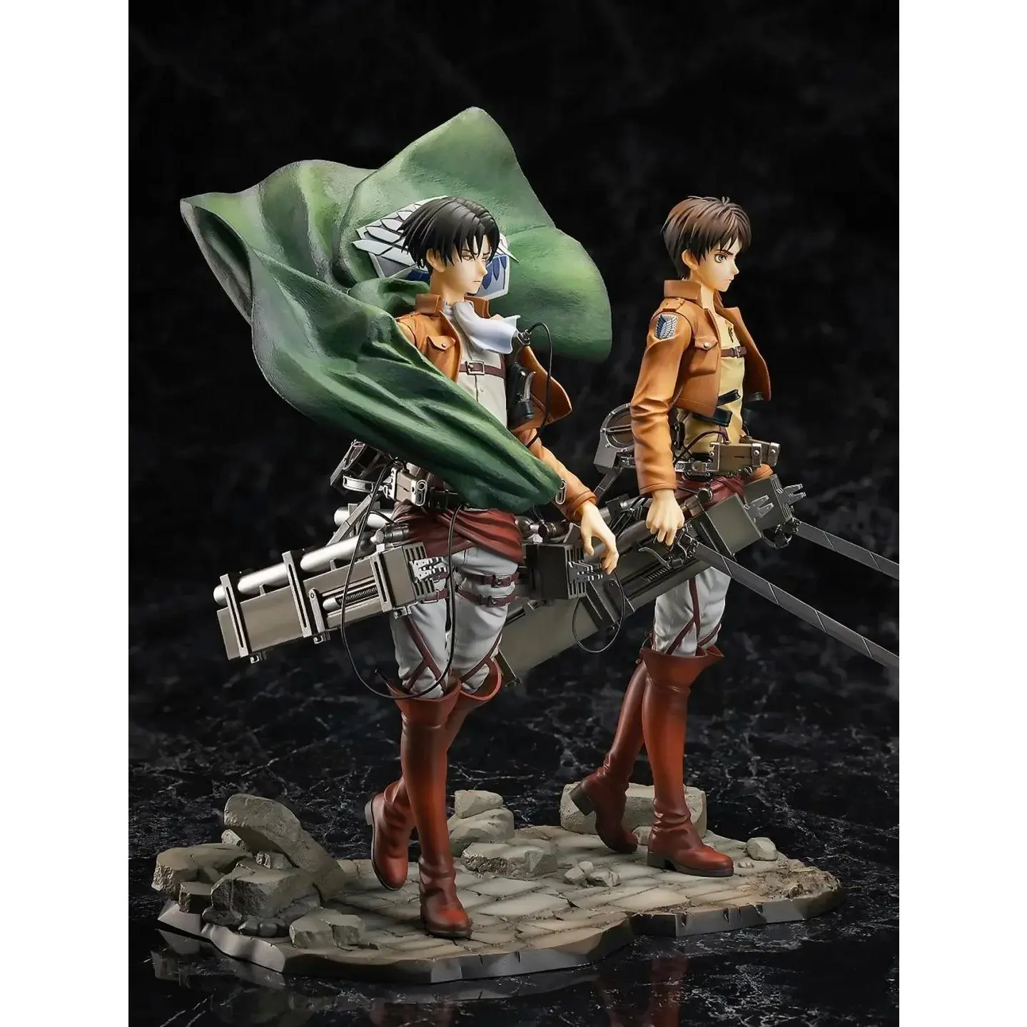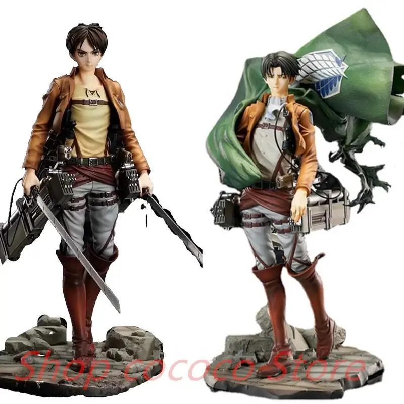 26CM Attack on Titan Anime Action Figure - Kawaii Levi Ackerman & Eren Jaeger Model Doll with Cloak Cute Room Decor Gift for Boy