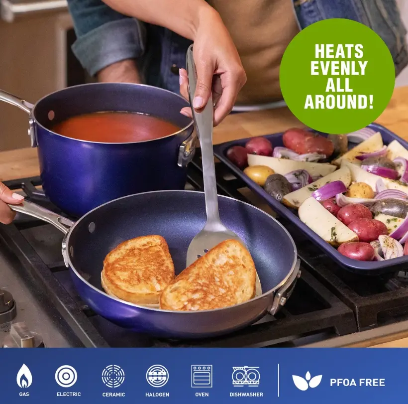 ·Versatile and Safe for Everyday Use: Oven safe up to 500°F and compatible with gas, electric, and glass cooktops. Made without PFOS and PFOA for safe, nontoxic cooking the whole family can enjoy.