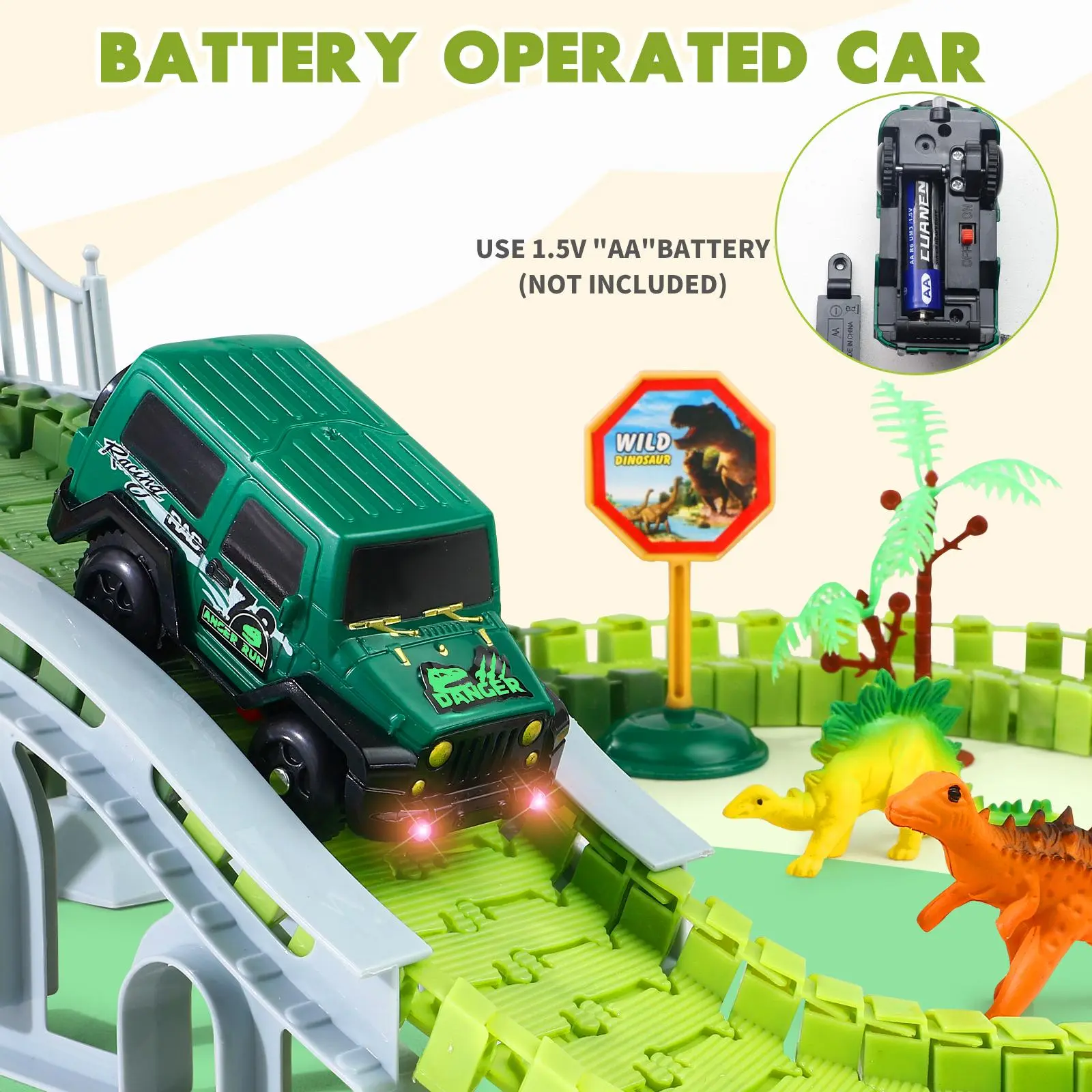 Bring the thrill of racing and the wonder of dinosaurs to your child's playtime with our Dinosaur Glow-in-the-Dark Toys Race Car Track—a perfect gift for young adventurers!