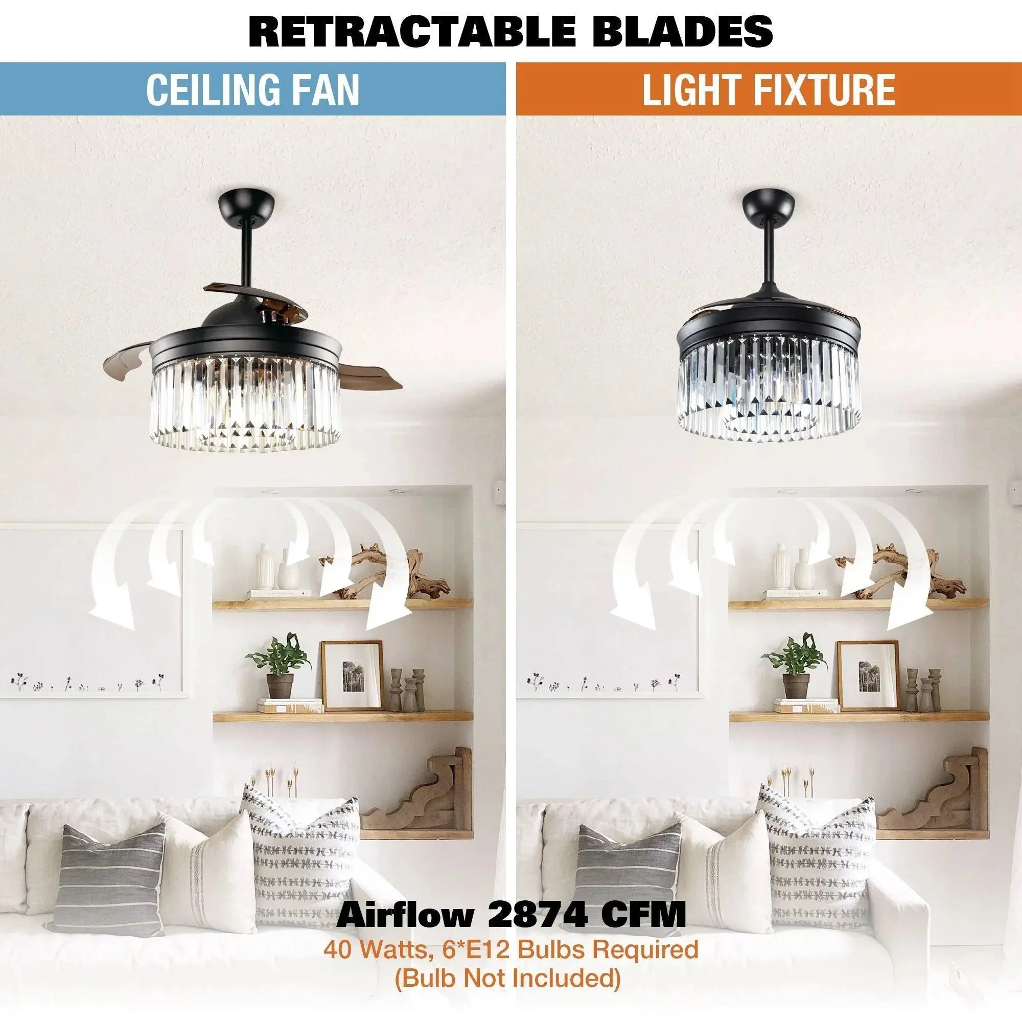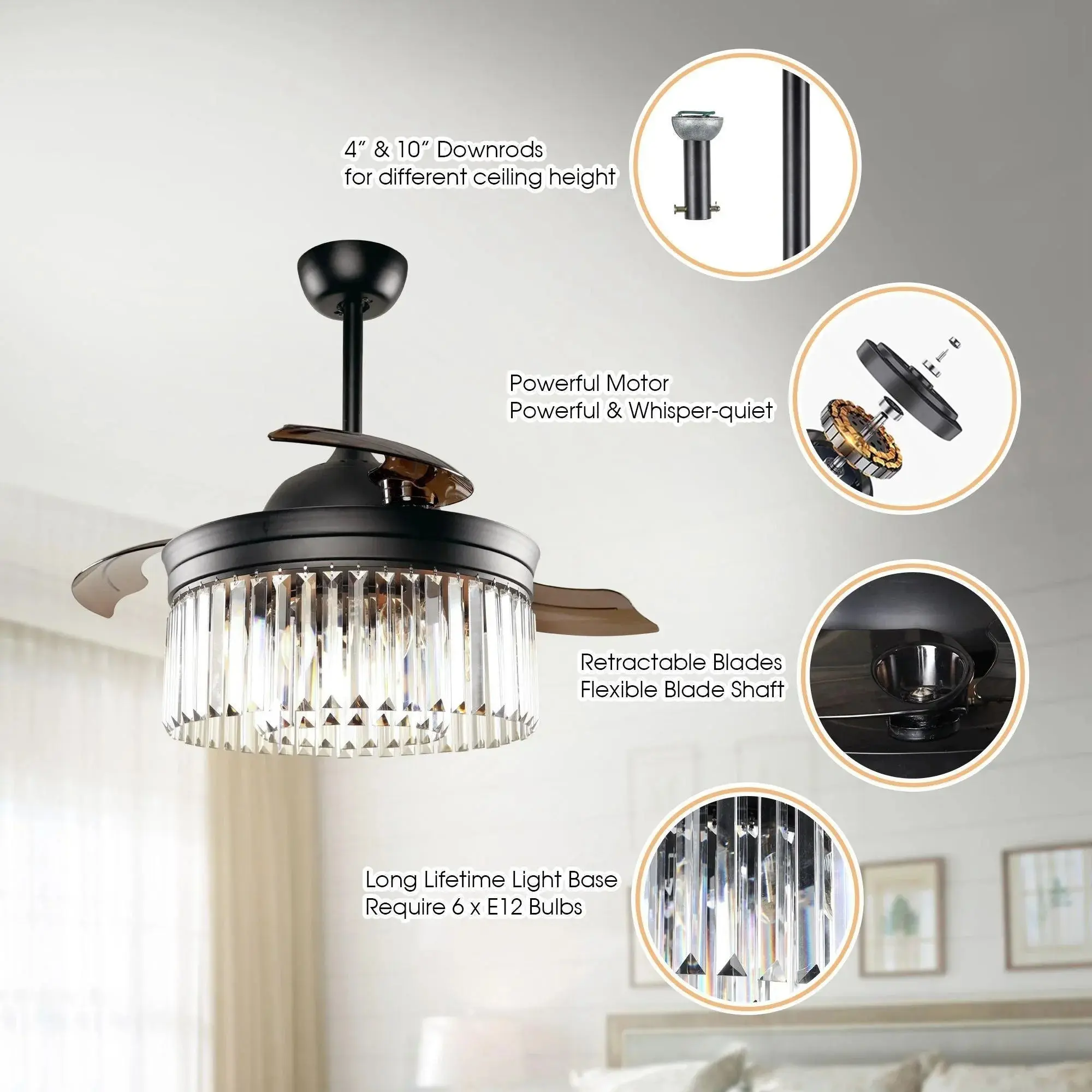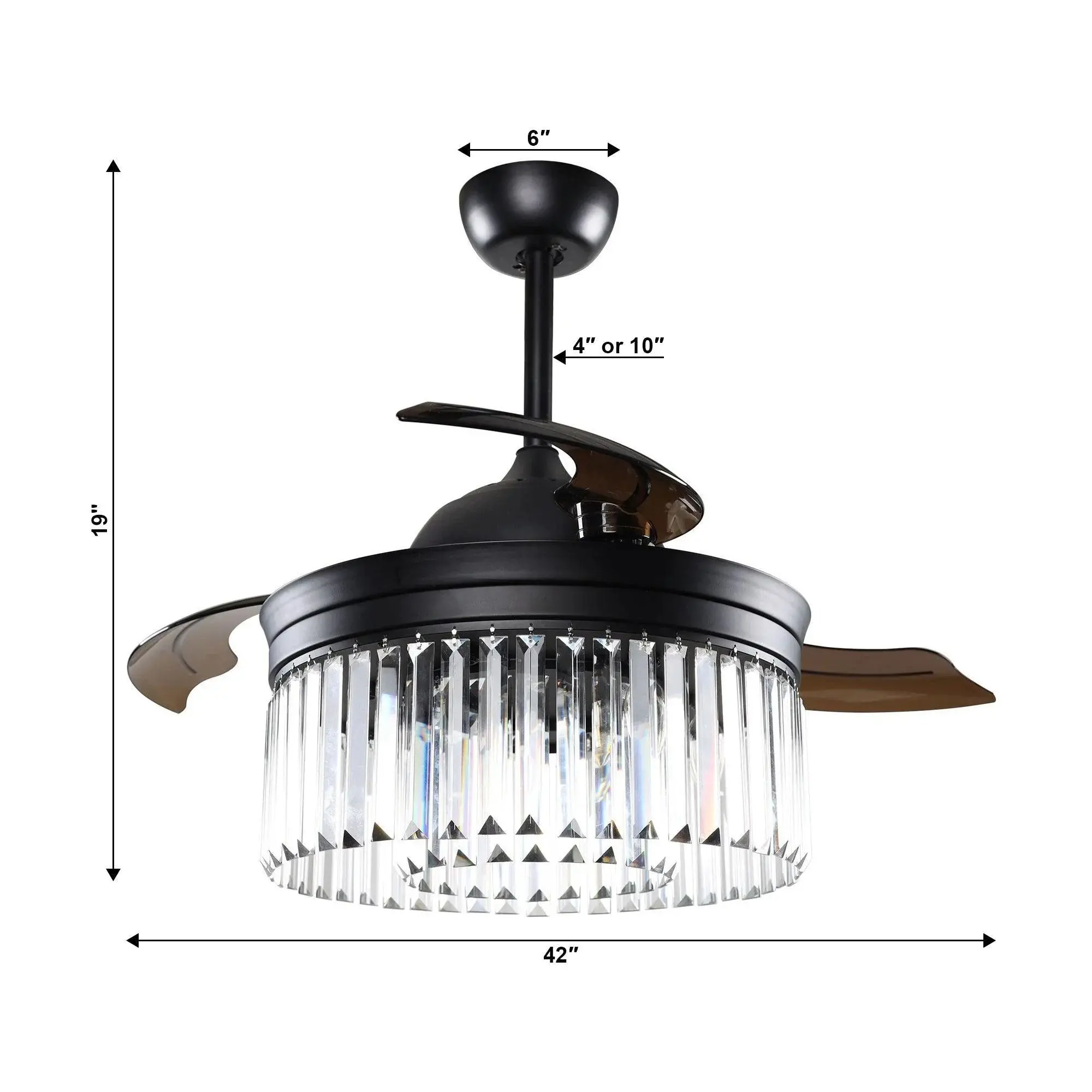 The 3-blade LED crystal chandelier ceiling fan with light, fan speed, and light can be controlled separately by remote control. Provided both functions of traditional lamps and fans. That makes it very convenient for you to use in the living room, bedroom, and so on.