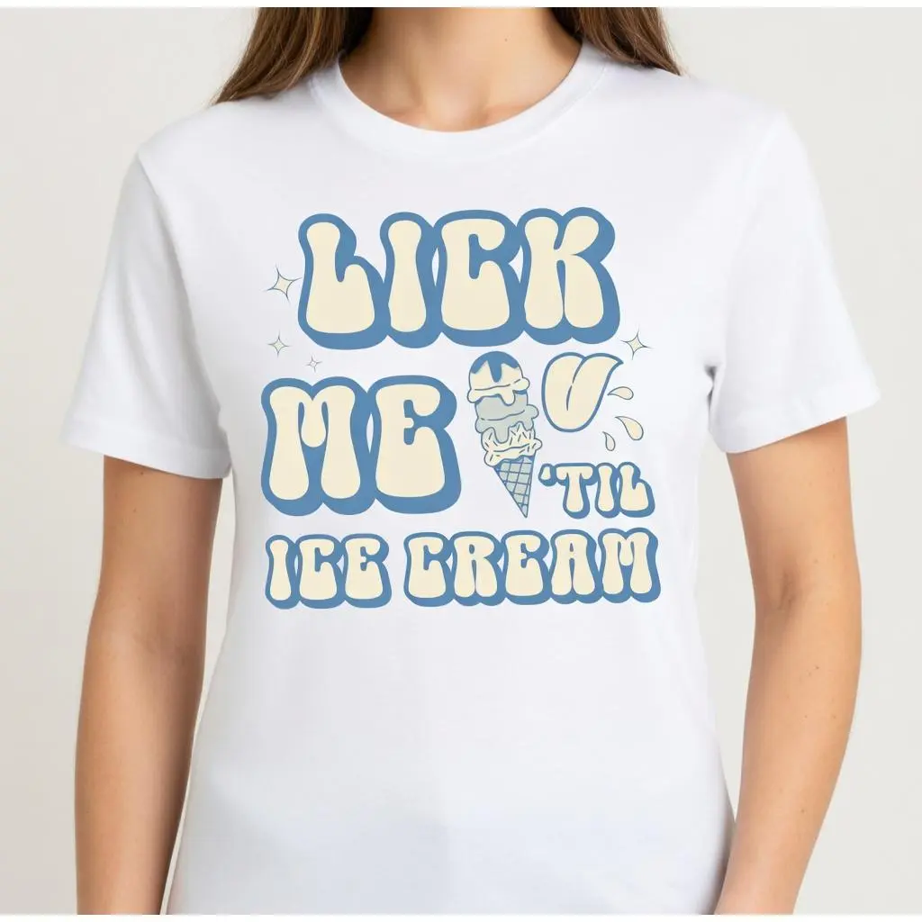 5. Lick Me 'Til Ice Cream Funny Graphic Tee, Retro Summer Ice Cream Design, Comfortable Unisex Fit, All‑Season Wear