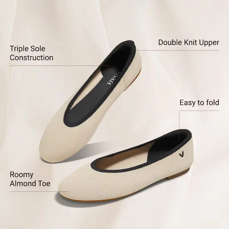 VIVAIA Almond-Toe Nude Flats , Wide Feet Friendly, Lightweight, Mary Janes Flats, Foldable Flats, Mashine Washable, Extra Padding, Non-Blisters, Suitable for Commute, Shopping, Vacations(Nubia)