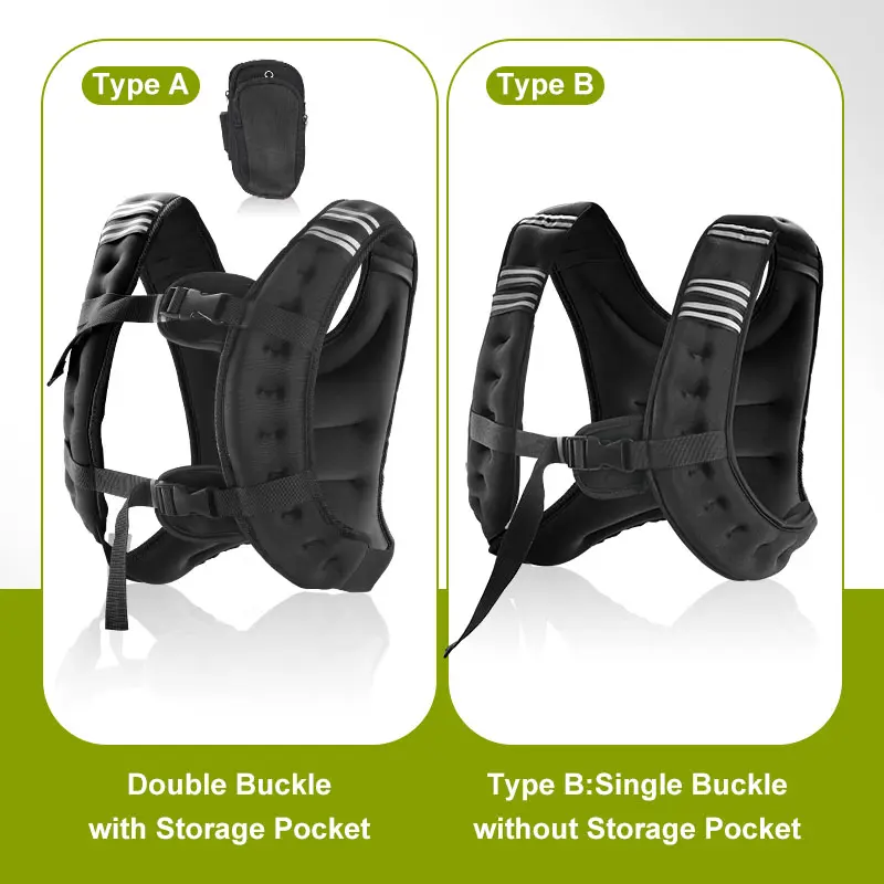 Choose between Style A and Style B. Style A features double buckle straps for stability and a built-in storage pocket for essentials. It fits chest sizes 32″–44″, ideal for running, HIIT, and strength training. Style B has a single buckle, lighter, and no pocket, suitable for walking and basic calisthenics. Both styles offer the same adjustable chest range. 🎨