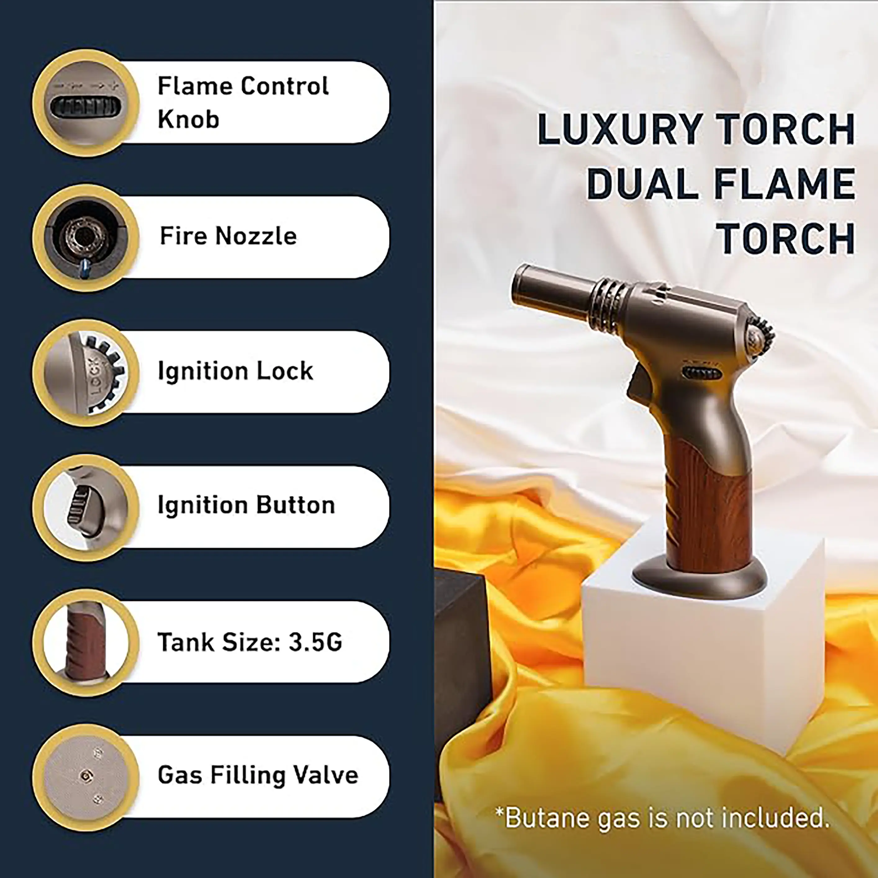 Dual Flame Butane Torch Lighter, Windproof Refillable Kitchen Torch, Adjustable Flame with Ignition Lock Blow Torch for Cooking, Creme Brulee, Soldering, Welding, Comes with an Exquisite Gift Box(Butane Gas Not Included)
