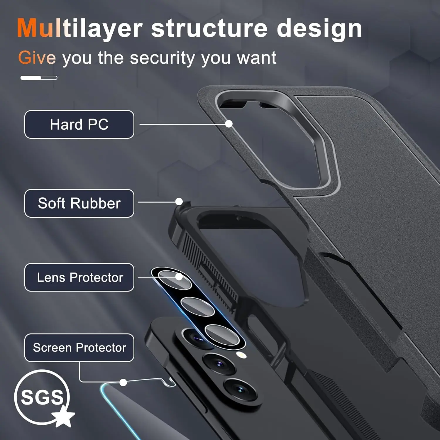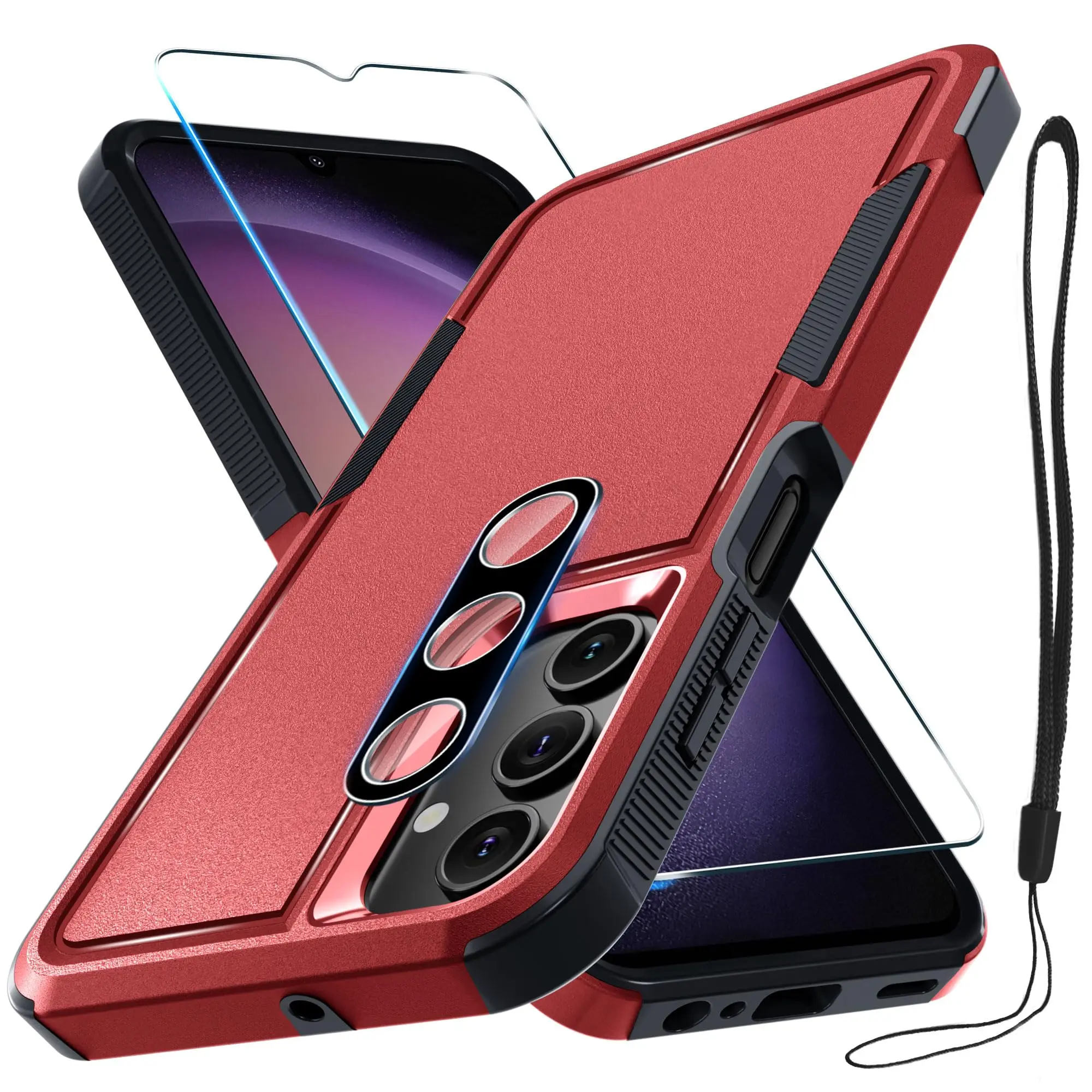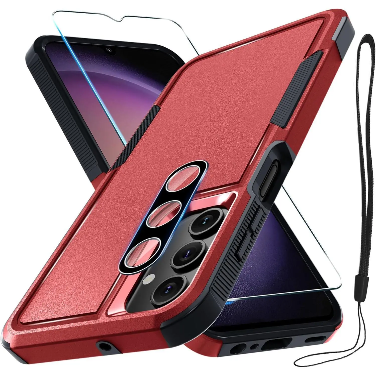 RMOCR Case for Samsung Galaxy A17 5G Phone Cover with Screen Protector+Camera Lens Cover,Military Grade Heavy Duty Shockproof PhoneCase with Wrist Lanyard Strap for Sam A17,Black Matte