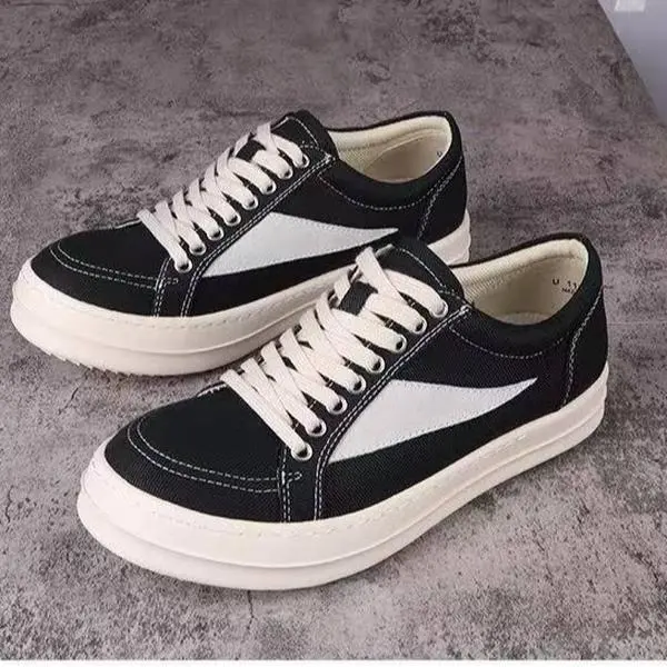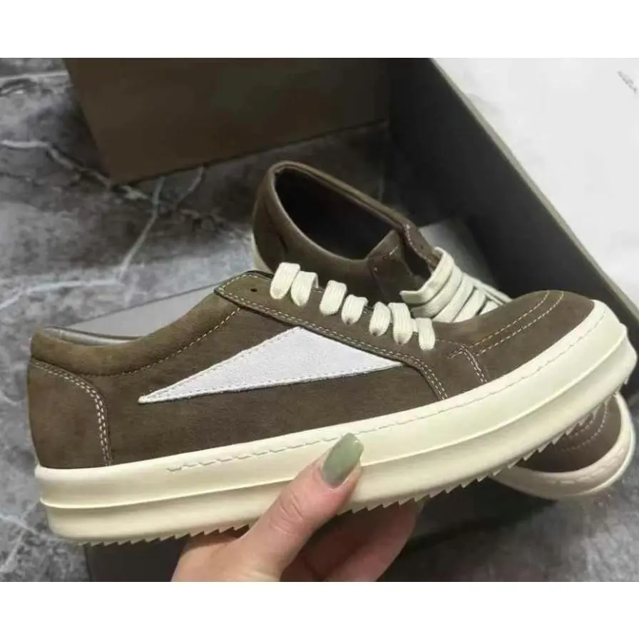Men's & Women's ro Low Top Genuine Leather Suede Canvas Shoes Luxury Outdoor Cowhide Lace Up Sneakers Designer Casual Inverted Triangle Thick Sole Trainers
