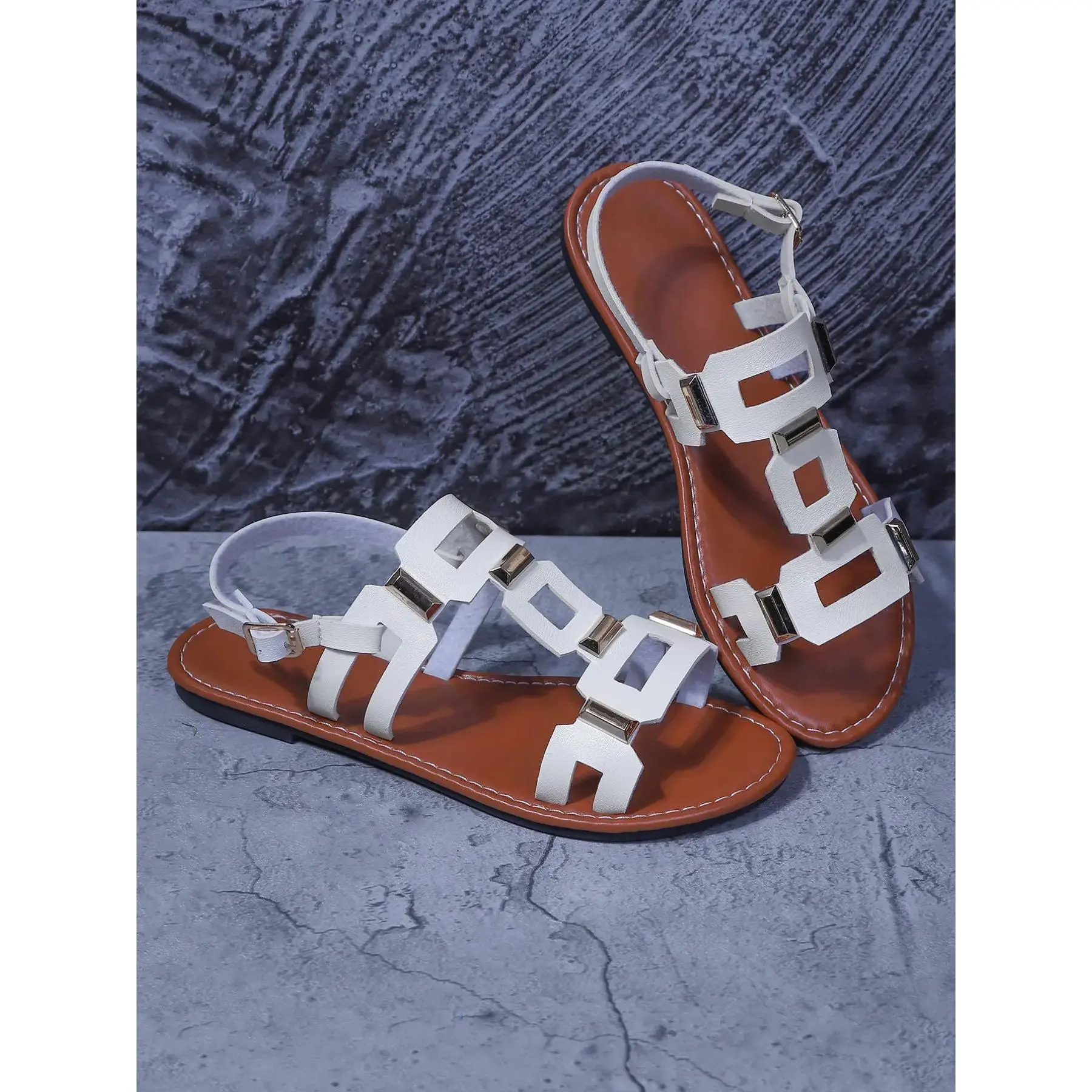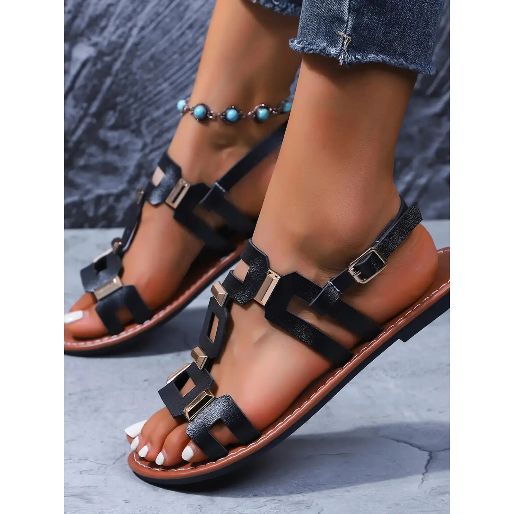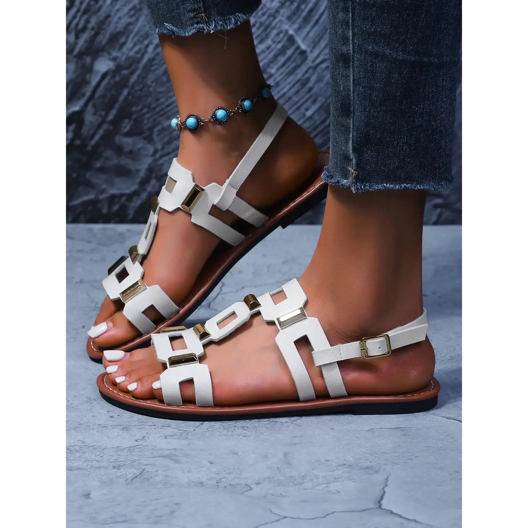 Women's Spring Summer Square Buckle Flat Sandals Footwear, Fashion Casual Style, Perfect for Everyday Daily Wear and Outdoor Activities
