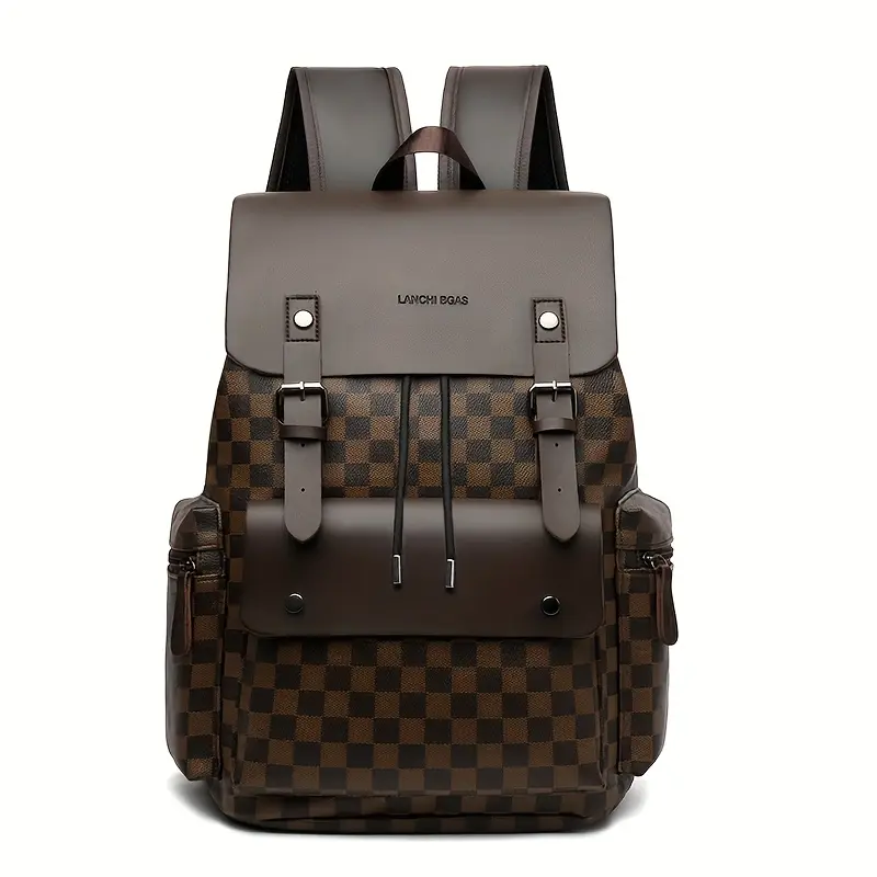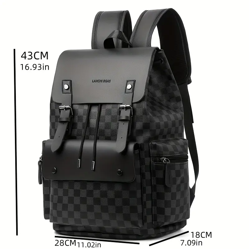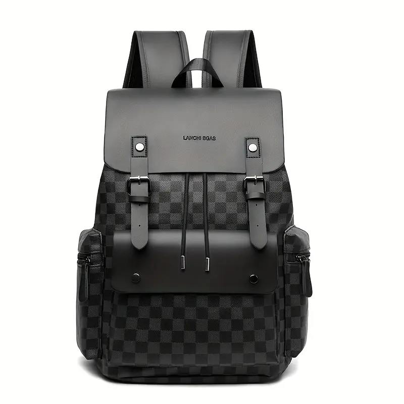 Men's Checkered Backpack - Large Capacity Laptop Bag with Adjustable Padded Straps, Multiple Compartments & Zipper Closure for Commuting, Office, Business Travel, Laptop Storage Bag| Stylish Men's Backpack| Professional Look Bag