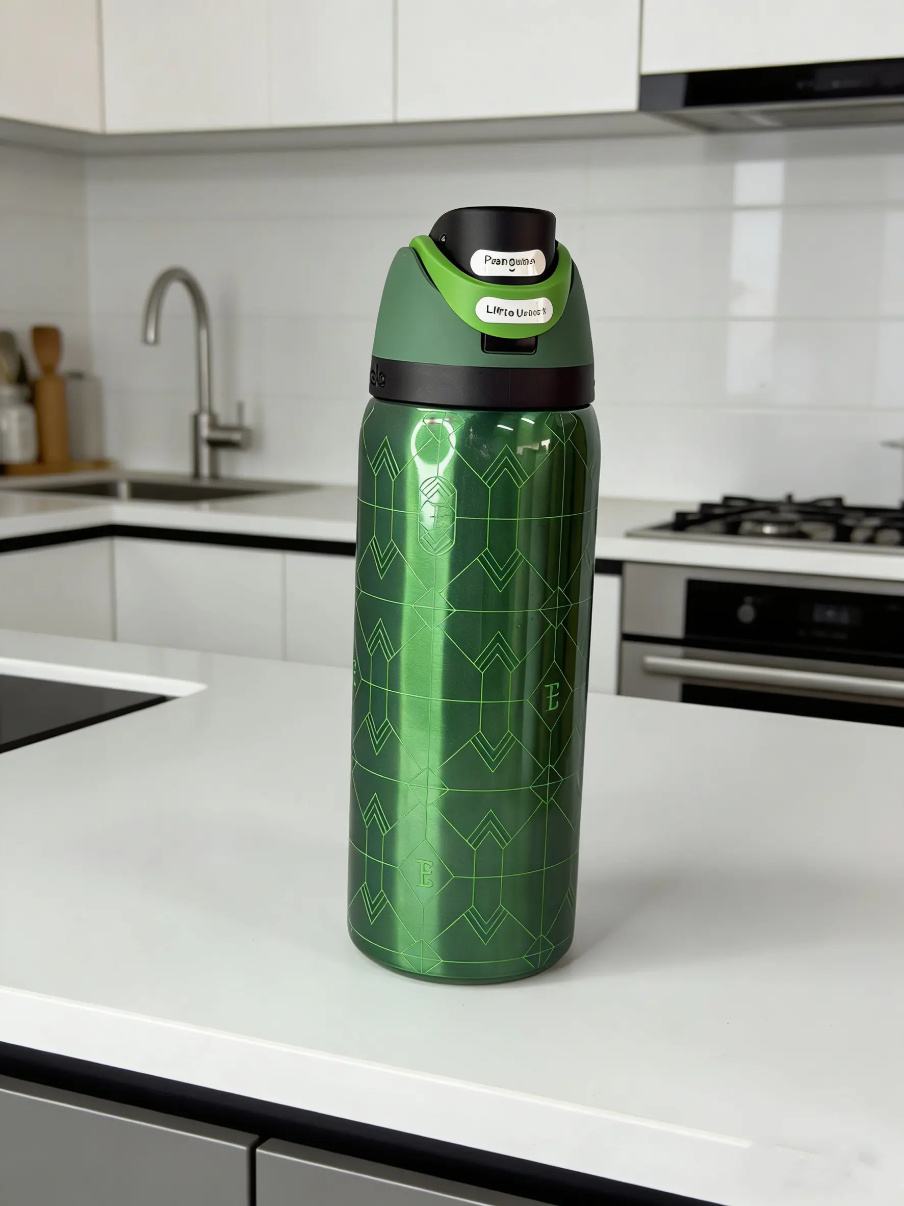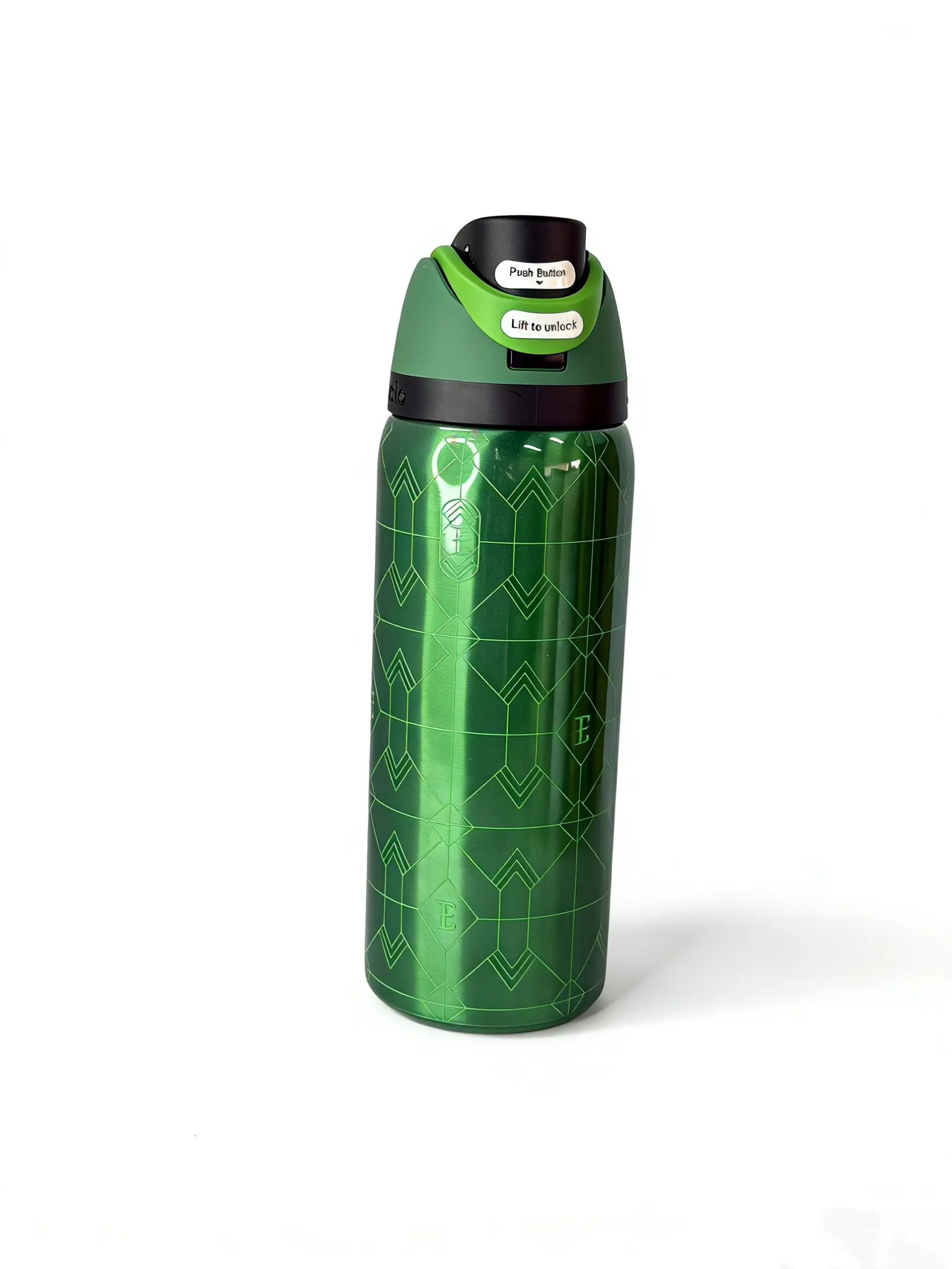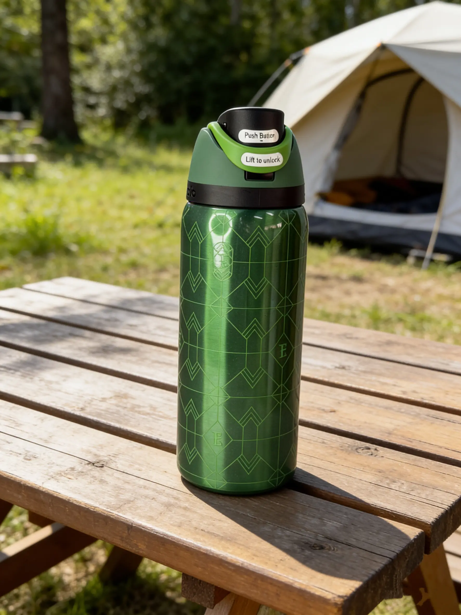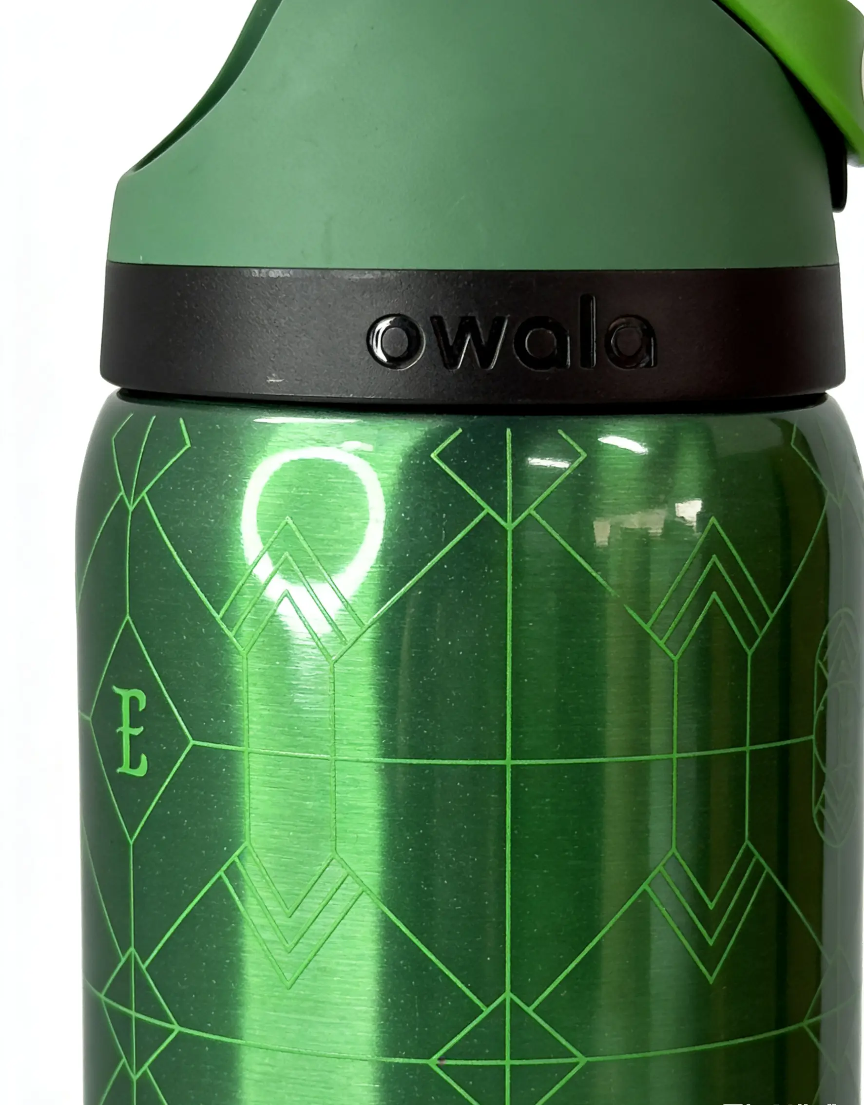 Stay hydrated with the Owala 32oz Insulated Water Bottle. Perfect for camping, it keeps drinks cold for 24 hours. The leak-proof design ensures no spills, making it ideal for outdoor adventures. Crafted from green stainless steel, it's both durable and stylish. The geometric design adds a modern touch to your gear.