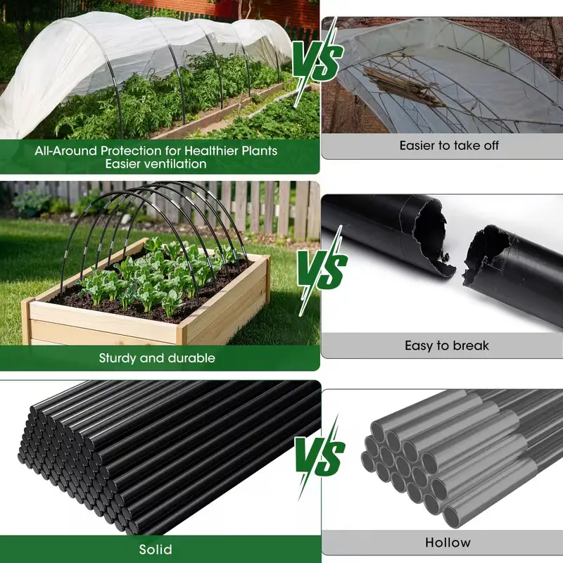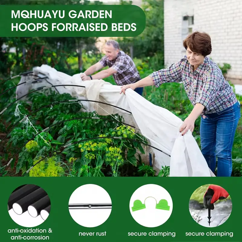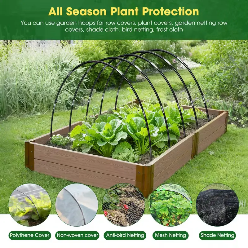 【All-Season Plant Protection】-- Garden hoops can be matched with different covers such as plant covers, garden netting, shade cloth, bird netting, anti-freeze cloth, etc. To provide the best protection for your plants in different seasons and protect plants from frost, insects, birds or strong sunlight.